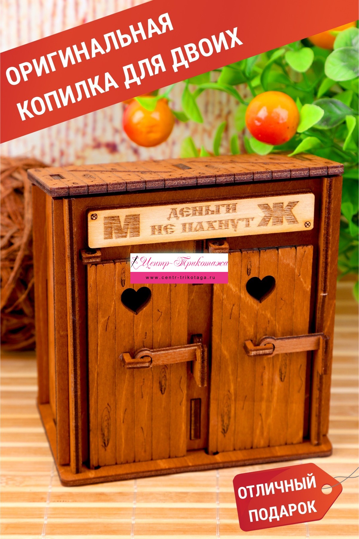 Копилка "Туалет двойной" коричневый деревянный замок маленький №ФС-24
