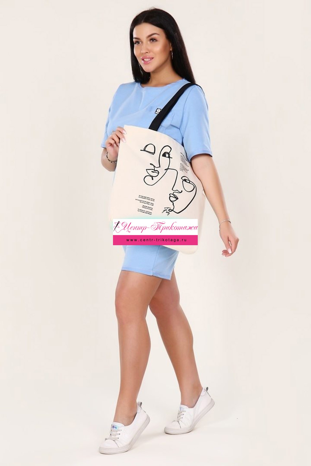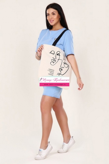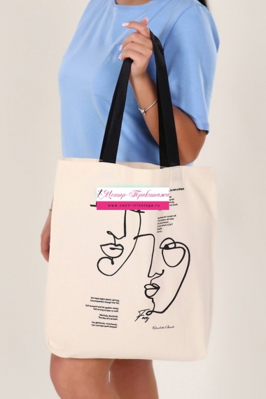 Сумка-шоппер с принтом "Face" (бежевый) №5109
