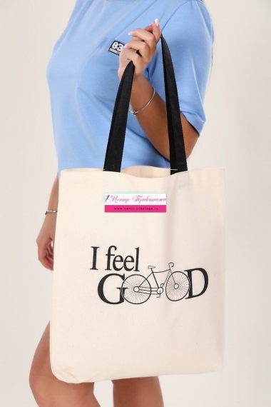 Сумка-шоппер с принтом "Feel Good" (бежевый) №5114