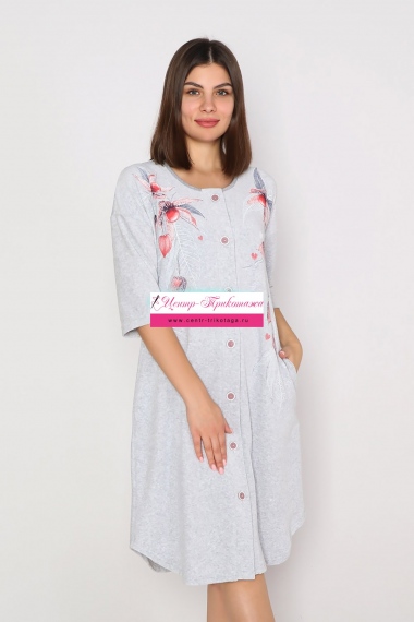 Халат "Физалис" (велюр, серый меланж) №М-Х-32