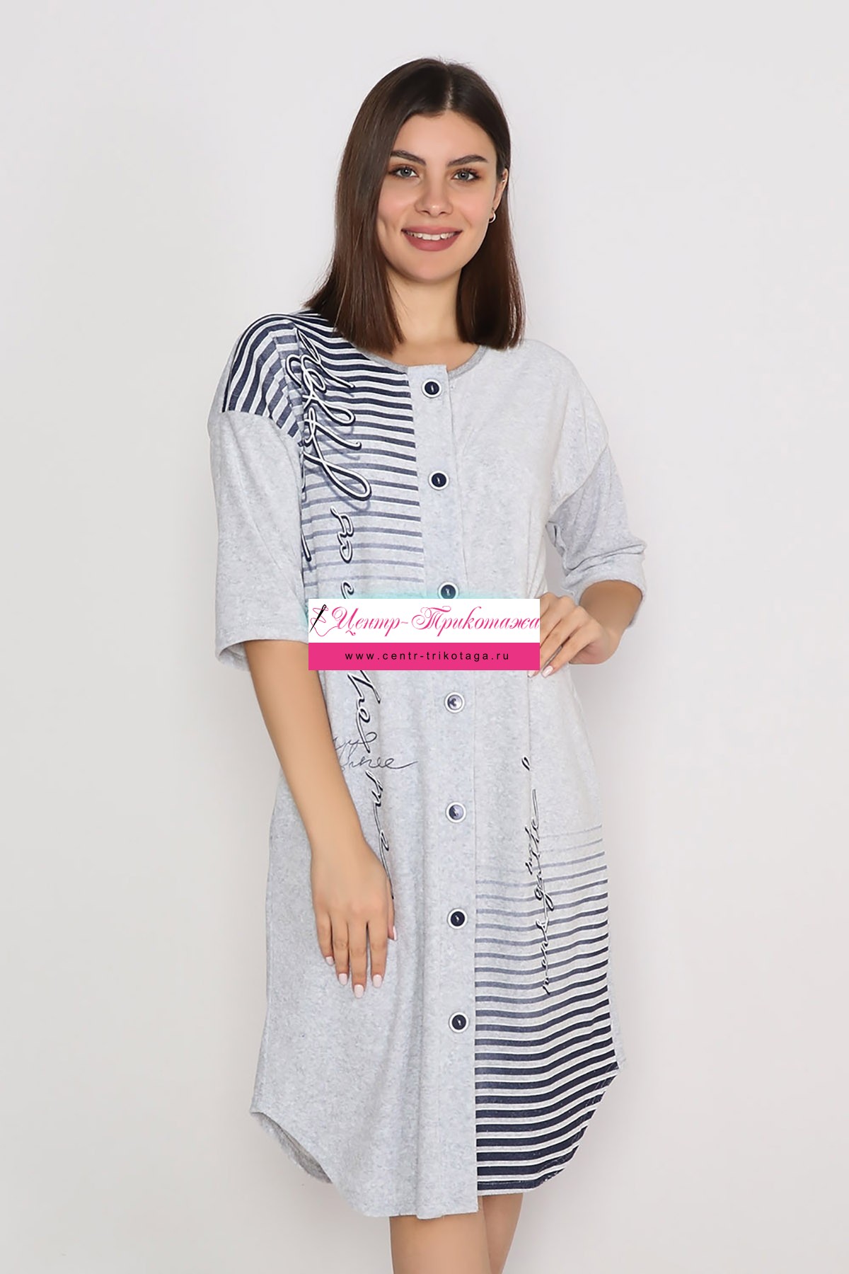Халат "Отражение" (велюр, серый меланж) №М-Х-34-1