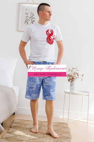 Бриджи мужские из кулирки Сёрфер голубой джинс №А-11040