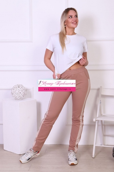 Удобные брюки для повседневной носки, выполнены из футера 2-х нитка. Вдоль боковых швов расположены лампасы из отделочного полотна. По бокам брюк имеются карманы. Пояс брюк обработан на поясной машине. Брюки подходят как для спорта, так и для отдыха