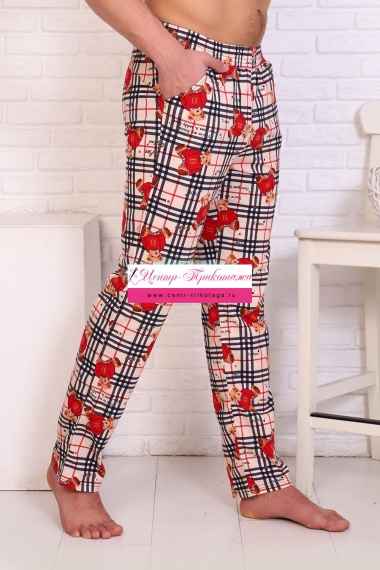 Мужские брюки являются идеальным вариантом для сна и отдыха, а также прекрасно подойдут в виде домашней одежды. Мужские брюки приятны к телу, а благодаря свободному крою не сковывают движения. Выполнены из 100% хлопка.