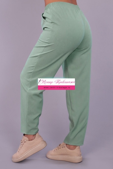 Модные женские брюки-бананы из смесовой ткани с содержанием льна. Свободные, зауженные к низу с помощью вытачек, широкий пояс на резинке, по бокам внутренние карманы. Длина брюк до щиколотки (рост модели 165 см). Очень комфортны и удобны в носке, не мнутся, отлично смотрятся со спортивной обувью.