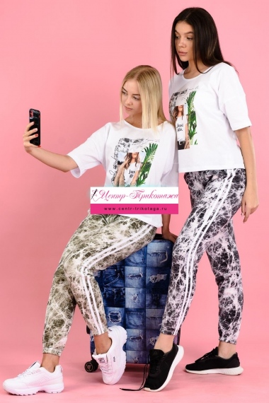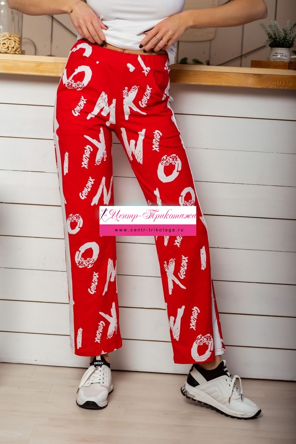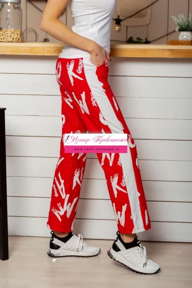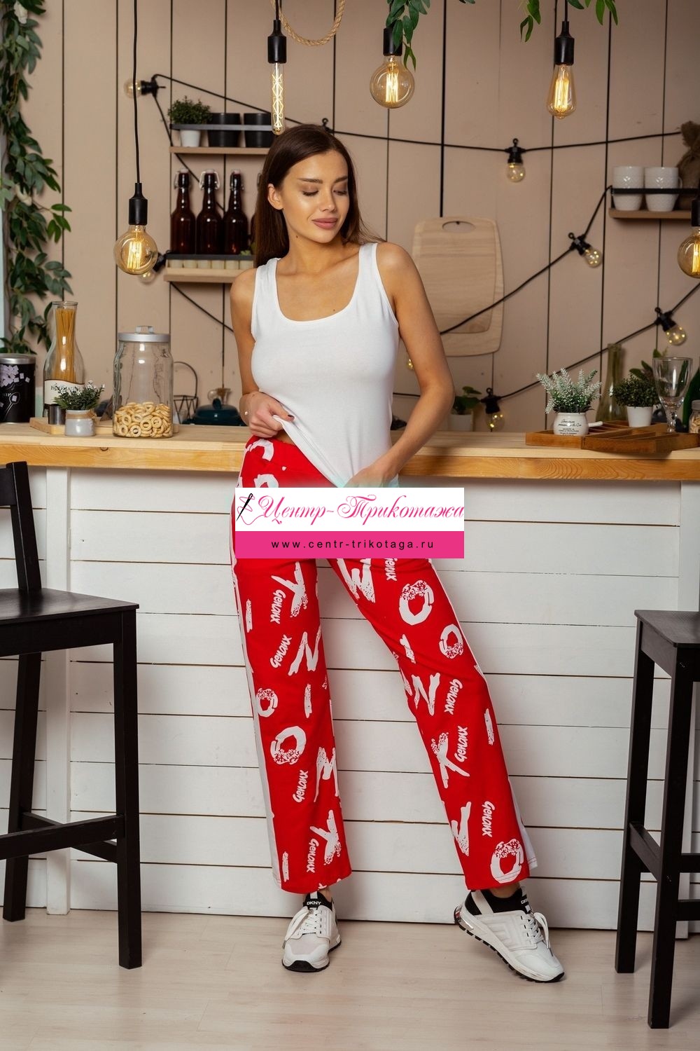Брюки свободные, прямые, с карманами, на поясе. Вдоль боковых швов расположены лампасы из отделочного полотна. Можно составить комплект с майкой 8238