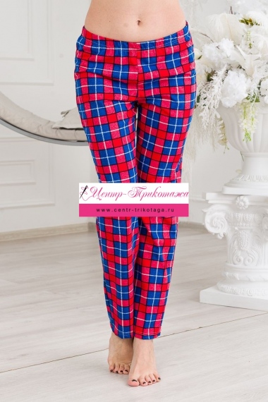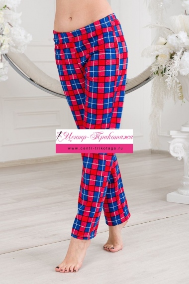 Брюки женские домашние из кулирки красно-синий №А-09129