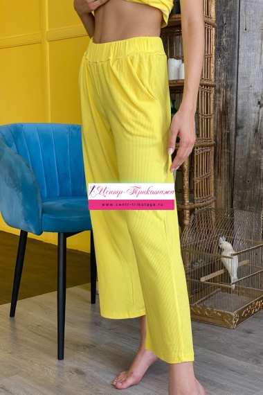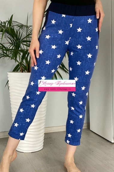 Брюки женские, к низу зауженные, с цельнокроеными манжетами. На передней части брюк два потайных кармана. В поясе эластичная тесьма. Брюки удобны и практичны как для носки на улице, так и в домашних условиях.
