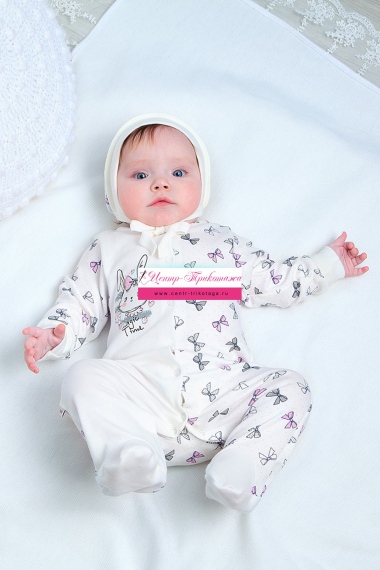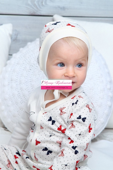 Чепчик интерлок "Амелька" (кремовый, красный) №ИВБ-20131
