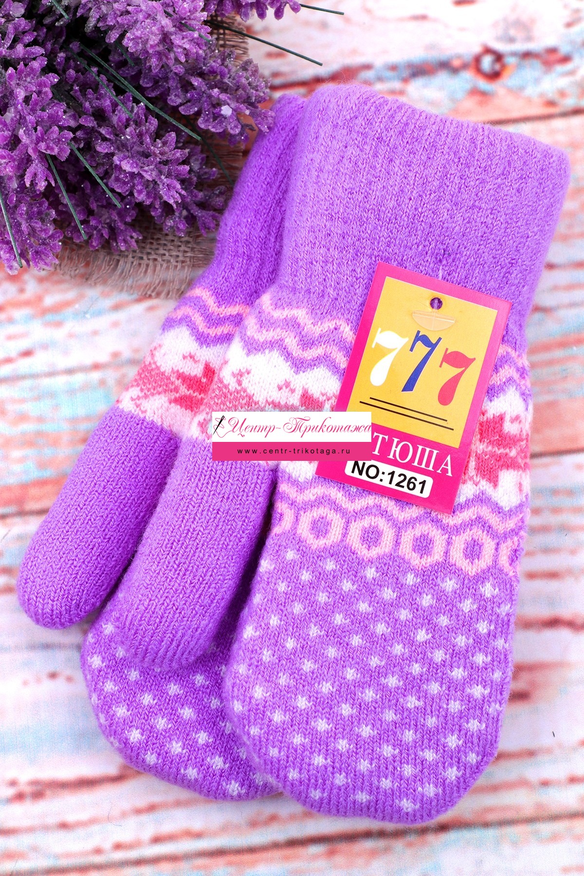Варежки детские "Катюша" (двойные, на меху) №1261