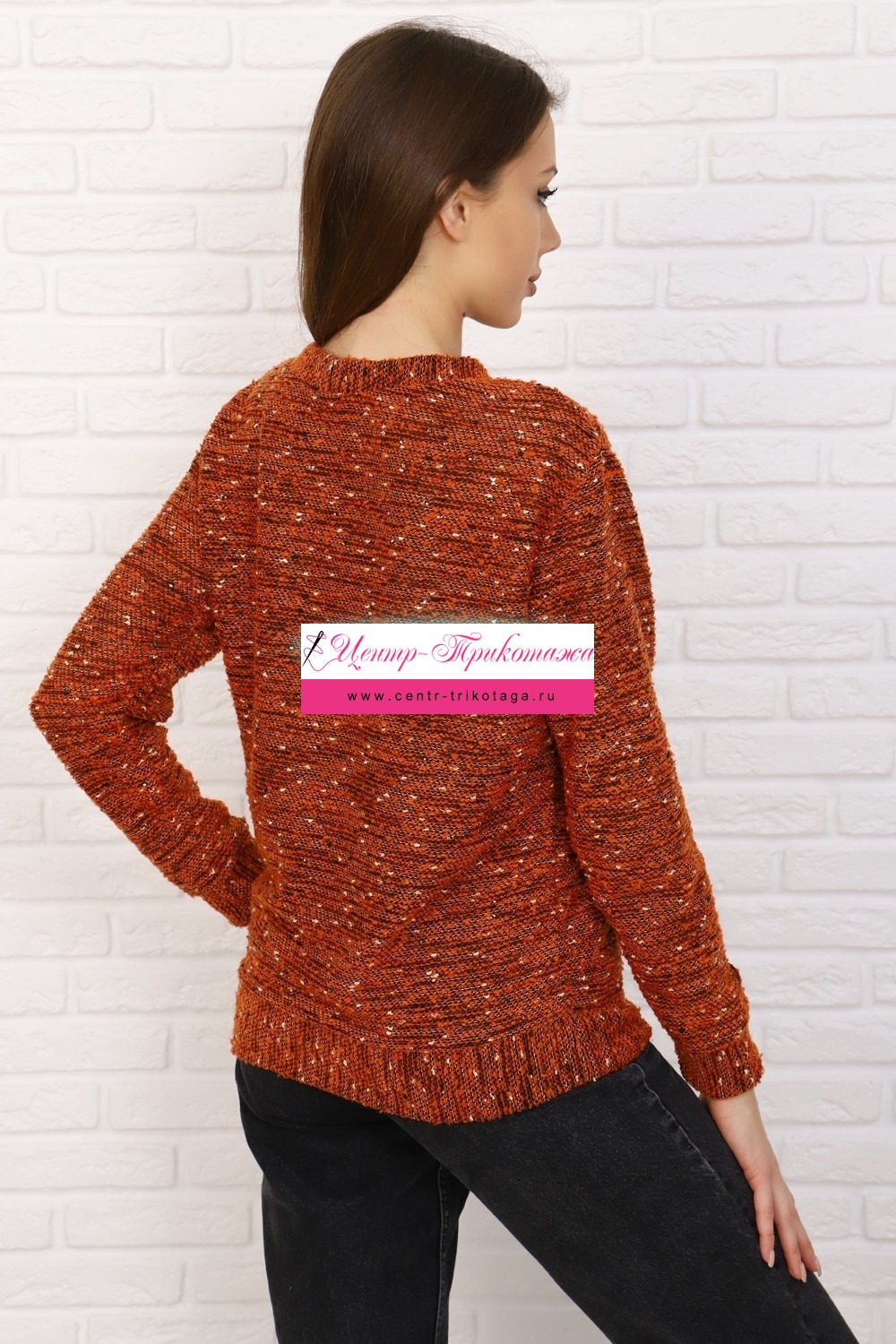 Джемпер женский из мягкого трикотажа букле с цветными вкраплениями. Круглая горловина обработана обтачкой, спущенная пройма, длинный рукав. В плечевом шве имеется силиконовый усилитель. Джемпер свободного покроя, низ и рукава обработаны широким манжетом. Джемпер приятный к телу, не колется.