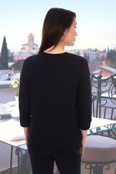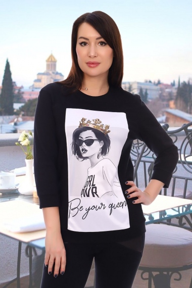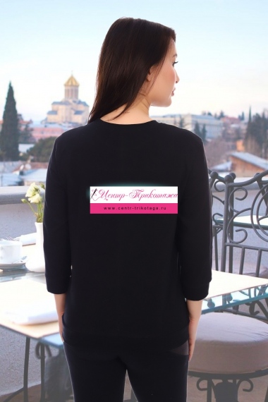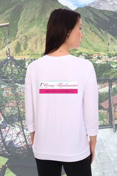 Джемпер женский с округлой горловиной, спереди принт. Модель со спущенным рукавом длиной 3/4