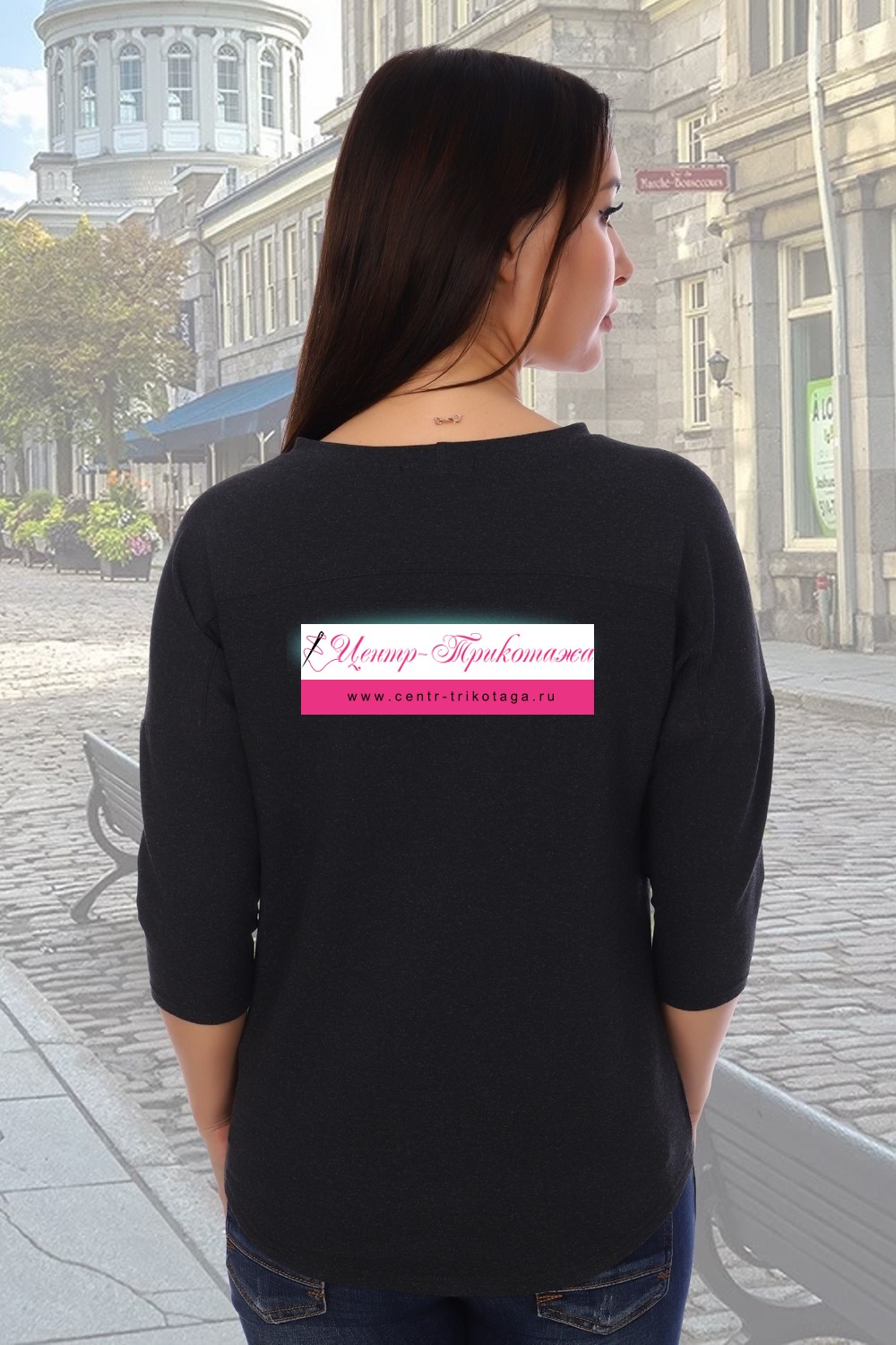 Джемпер с принтом, круглая горловина обработана обтачкой, спущенная пройма, рукав 3/4. На спинке кокетка, низ спинки слегка удлинён.