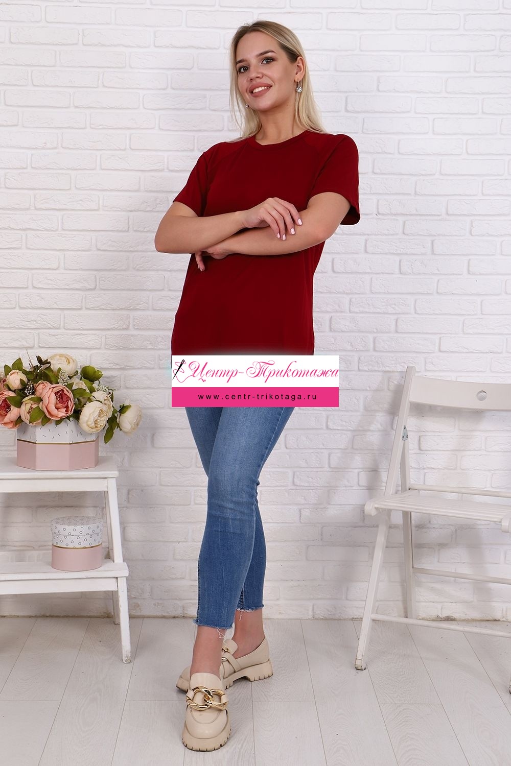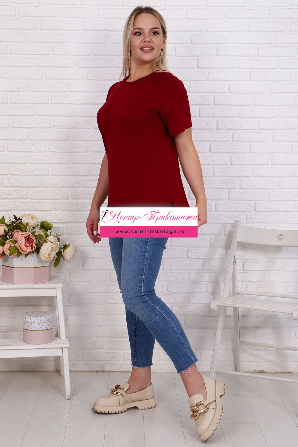 Футболка свободного силуэта имеет разрезы по бокам, рукав - реглан и круглый вырез горловины. Свободный стиль позволяет скрыть недостатки, придает шарм и уверенность. Модель будет отлично смотреться в комбинации как с джинсами, так и короткой юбкой.