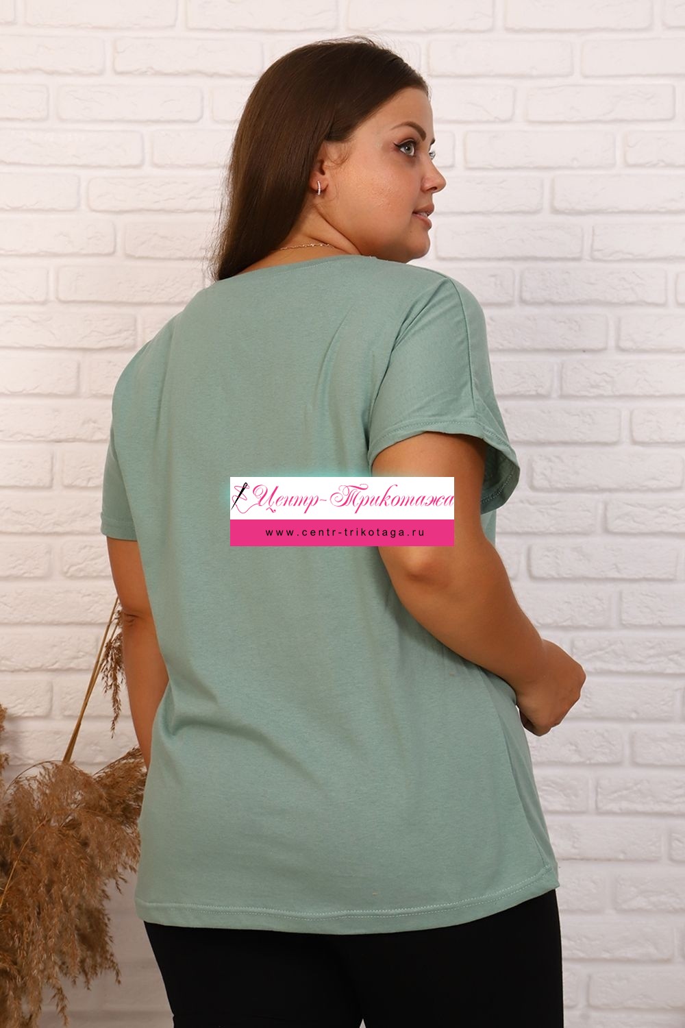 Футболка женская, свободного покроя. Рукав спущенный. Низ изделия обработан на плоскошовке.