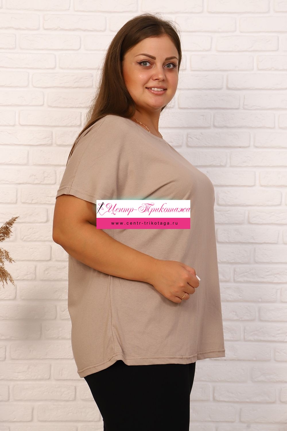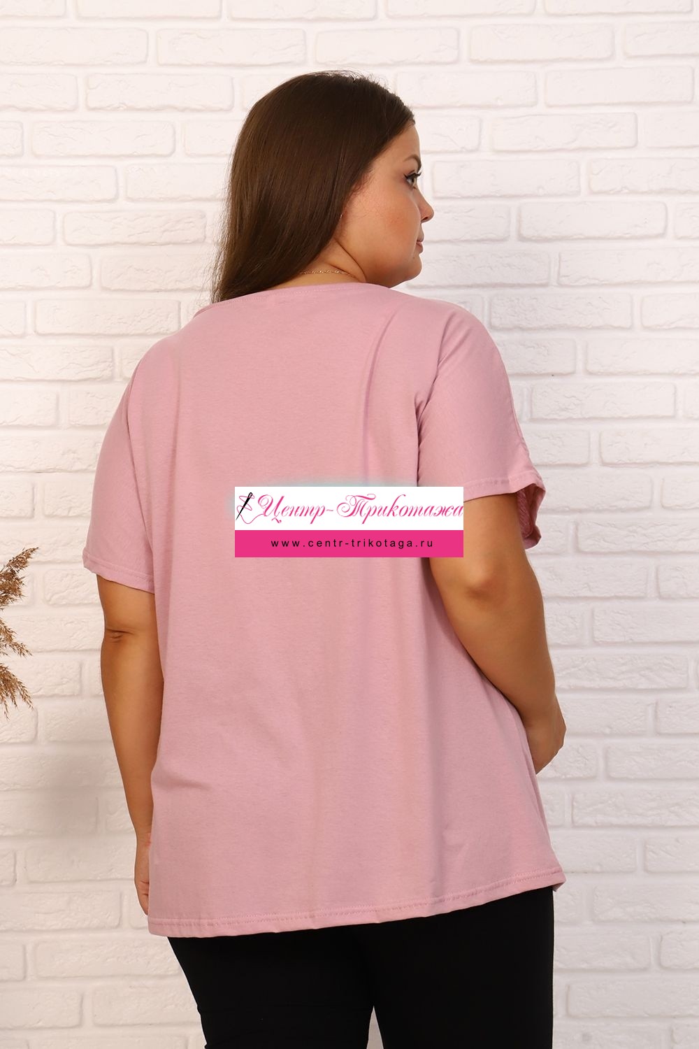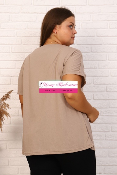Футболка женская, свободного покроя. Рукав спущенный. Низ изделия обработан на плоскошовке.