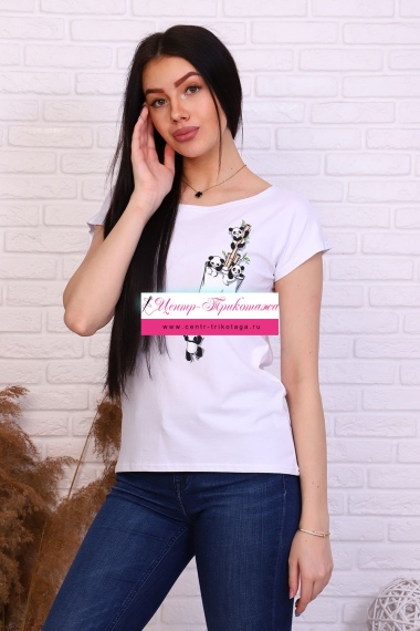 Футболка с молодёжным принтом из кулирки с лайкрой качества пенье. Модель слегка приталенного силуэта, горловина в виде лодочки, спущенная пройма, спинка слегка удлинена. Футболка - это базовая комфортная вещь женского гардероба, её надевают в спортзал, в офис и даже на вечеринку.