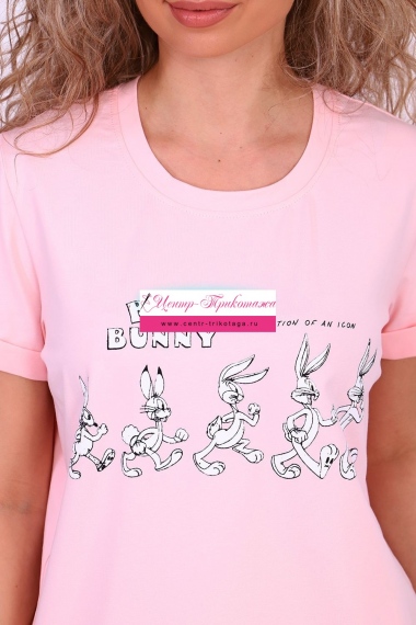 Молодежная футболка с модным принтом - зайчики. Футболка с рукавом на манжете, по горловине обтачка. Ткань очень приятна к телу. Подойдет на любое время года.