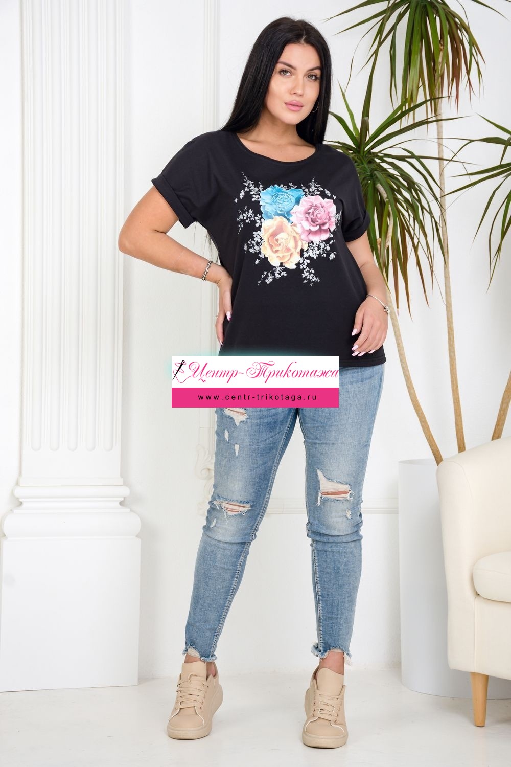 Футболка - незаменимый спутник женщин в летнее время. Состав - 100% хлопок. Свободный силуэт. Цельнокроенный рукав с манжетой. Принт в нежных тонах с листочками из искрящегося глиттера серебром. Прекрасно сочетается с джинсами и шортами, юбками и комбинезонами.