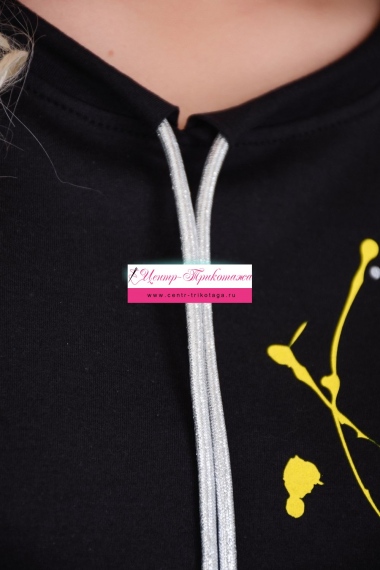 Женская футболка из мягкой натуральной ткани. Благодаря свободному крою безупречно садится по фигуре. Рукав 3/4. Контрастная печать с серебром. Серебряный шнурок в тон.
