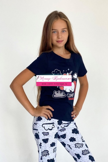 Футболка детская с коротким рукавом. Горловина с круглым вырезом, на полочке принт.