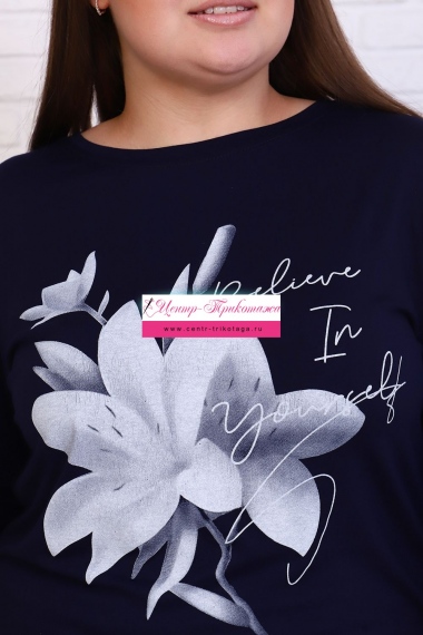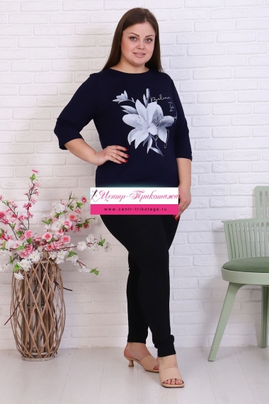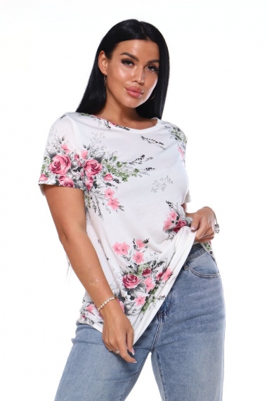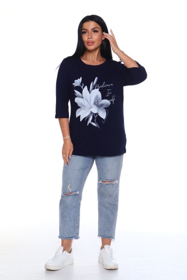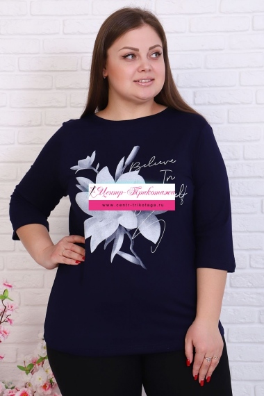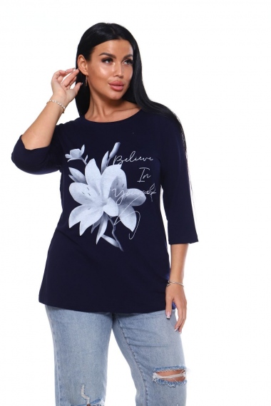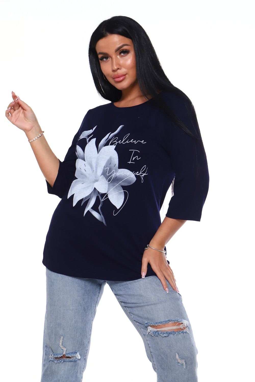 Футболка женская из вискозы. Украшена печатью, рукав 3/4.
