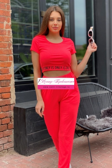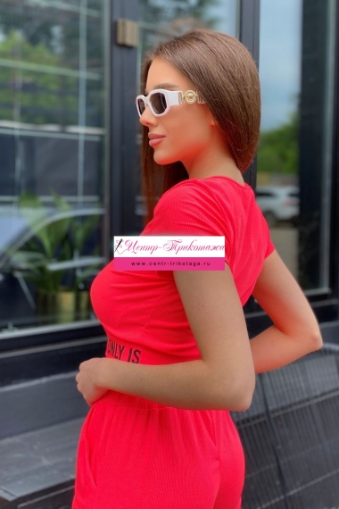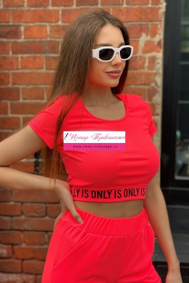 Футболка облегающая, с округлой горловиной, длиной выше талии. Рукав втачной, короткий. Горловина обработана бейкой из основного полотна.