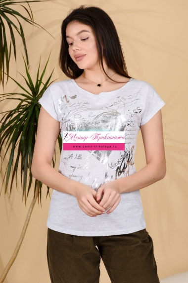 Футболка полуприлегающего силуэта, средней длины, с округлой горловиной. Рукав цельнокроеный, короткий.