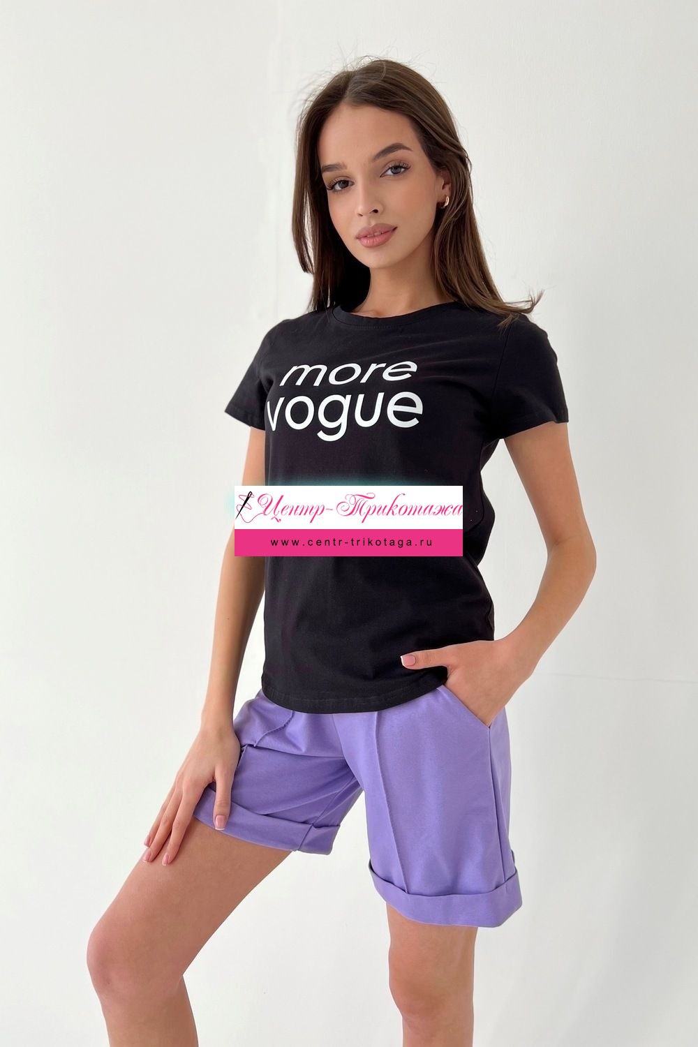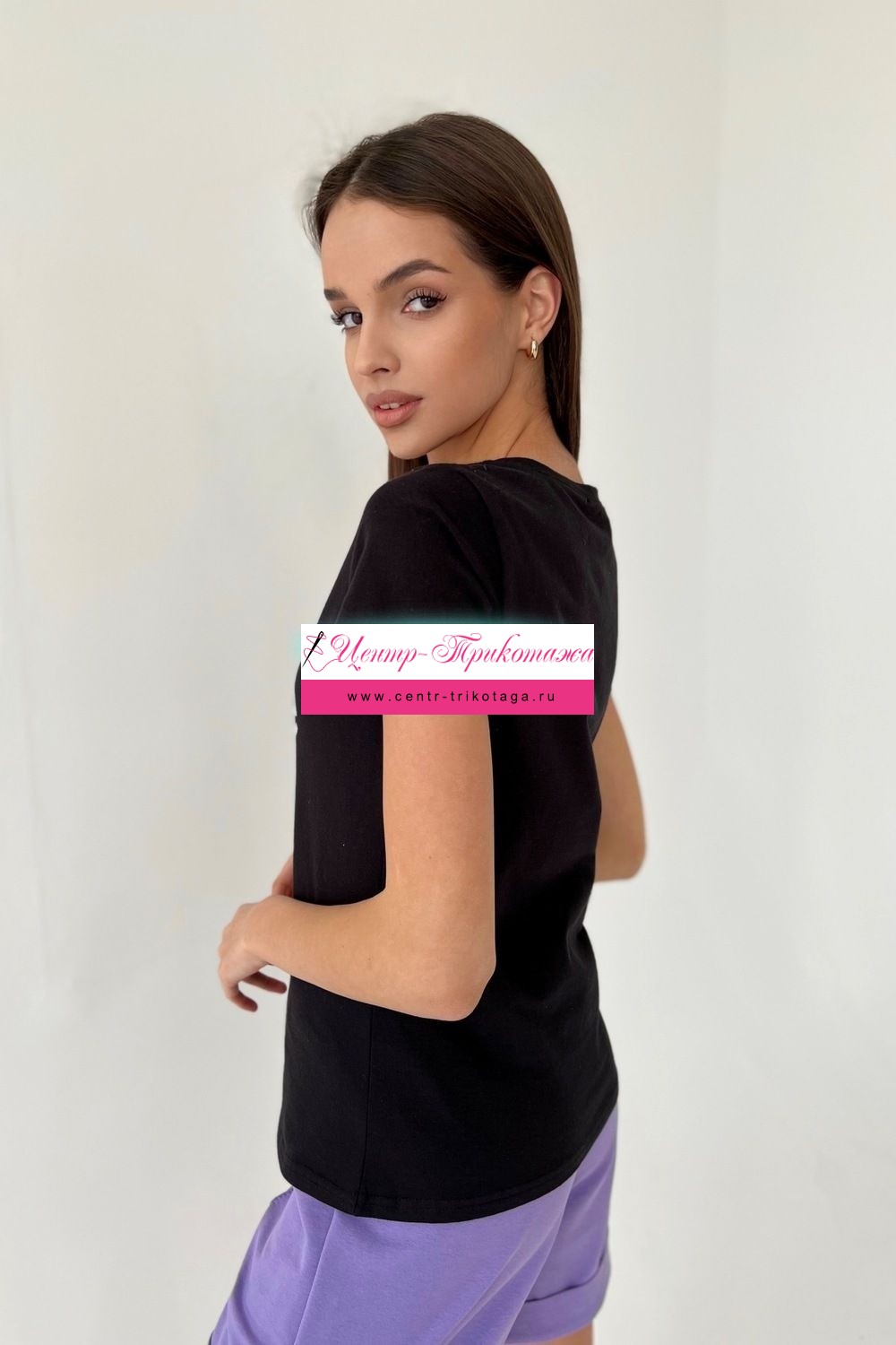 Футболка прямого силуэта, с округлой горловиной, длиной до середины бедра. Рукав втачной, короткий. Горловина обработана обтачкой из основного полотна.