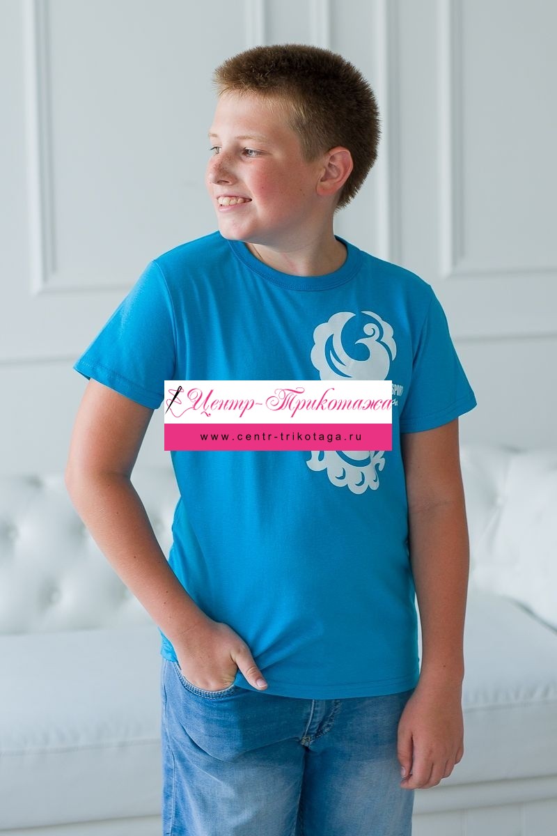 Футболка детская из кулирки Россия бирюза №А-06278