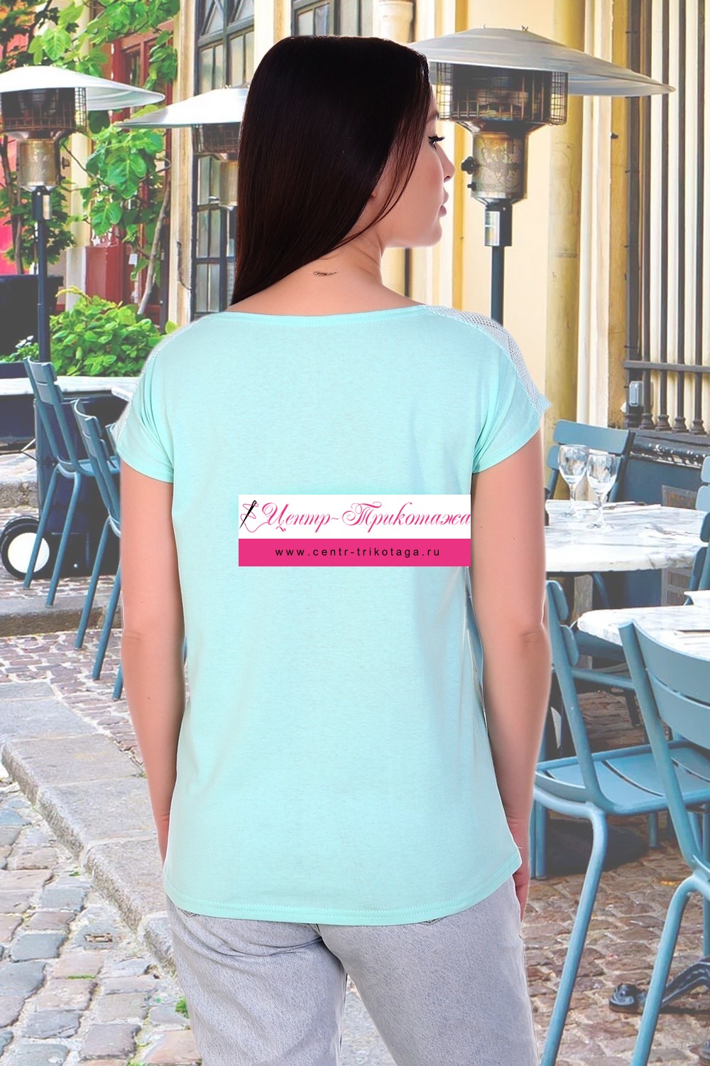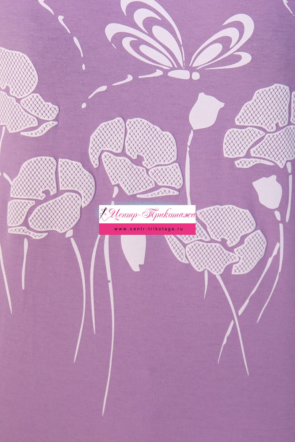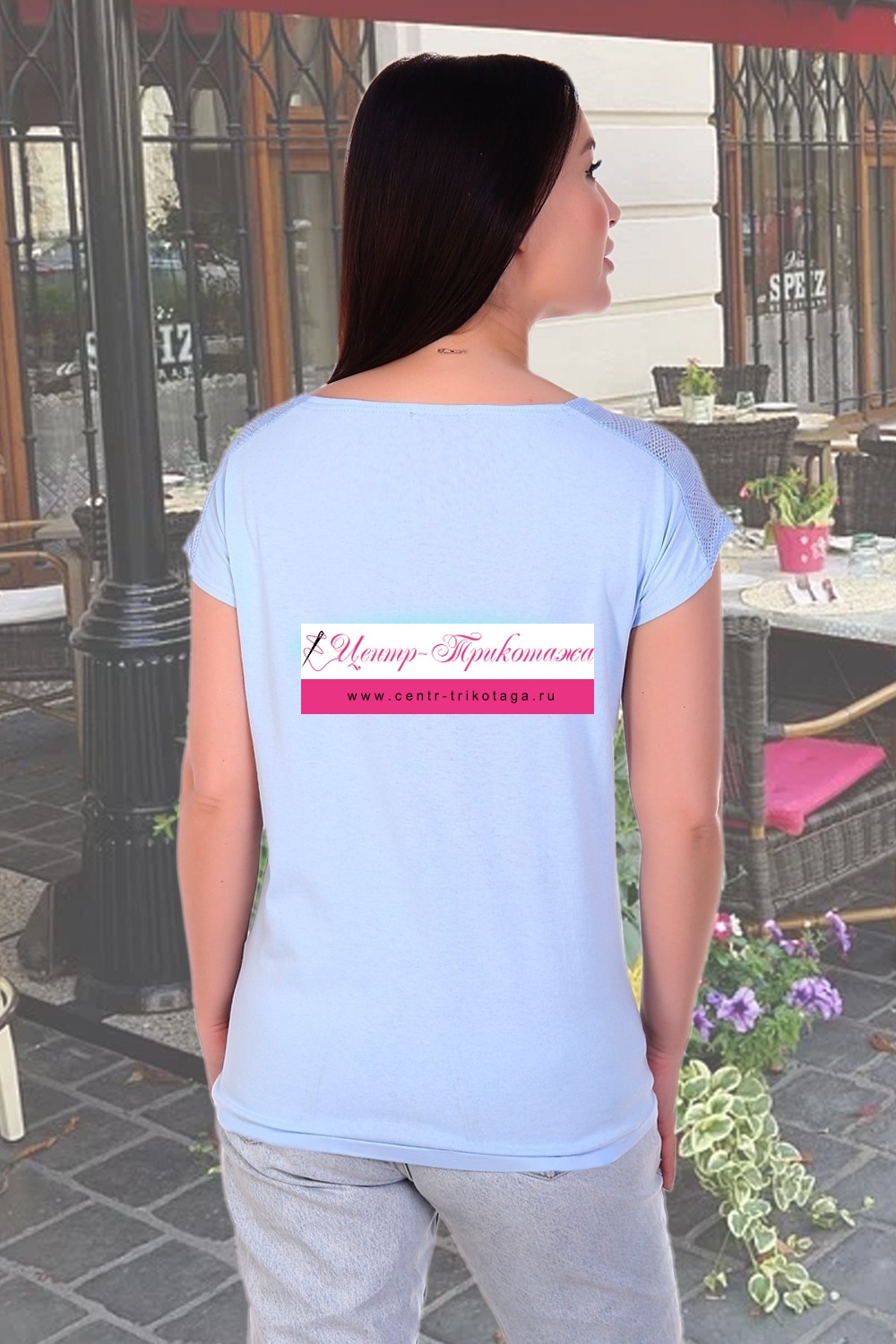 Футболка женская с принтом из комбинированного трикотажа - кулирки и ажурного трикотажа. Футболка слегка приталенная, горловина в виде лодочки, спущенная пройма, на плечах кокетка - погоны из ажурного трикотажа. Низ спинки удлинён и слегка закруглён. Футболка из натурального 100% хлопка - комфортная, приятная к телу, подойдёт как для повседневного гардероба, так и для активного отдыха.