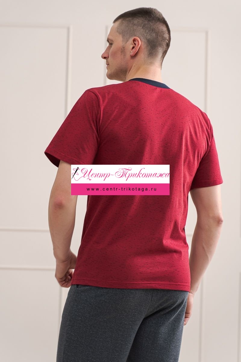 Футболка мужская из плотной кулирки Березка чёрный на винном №А-07367