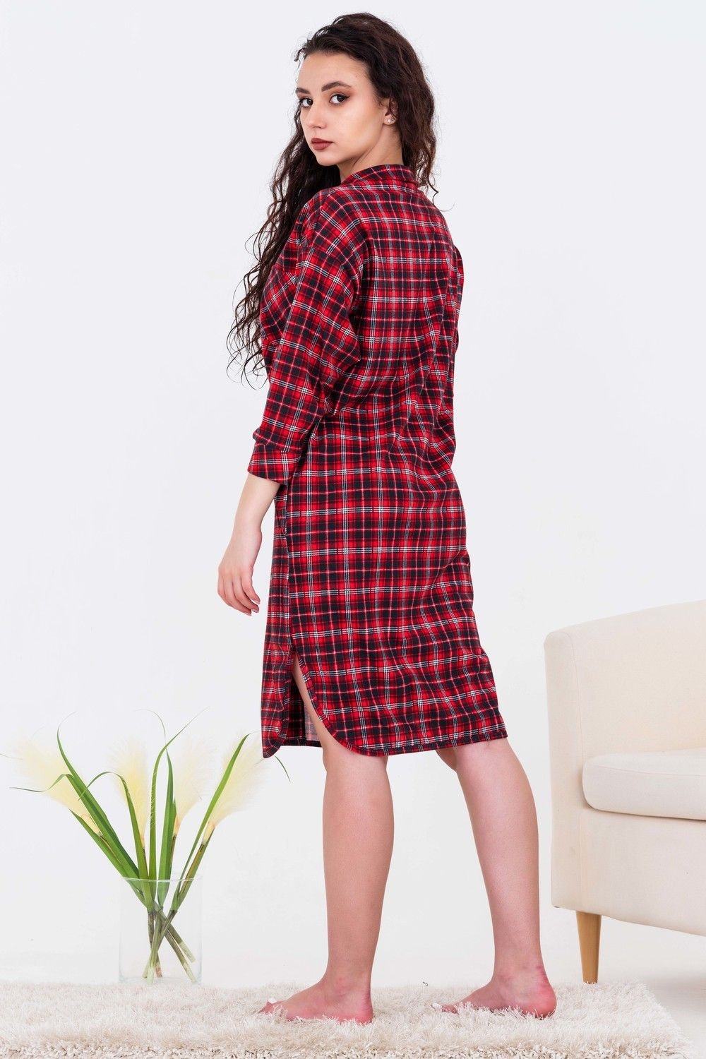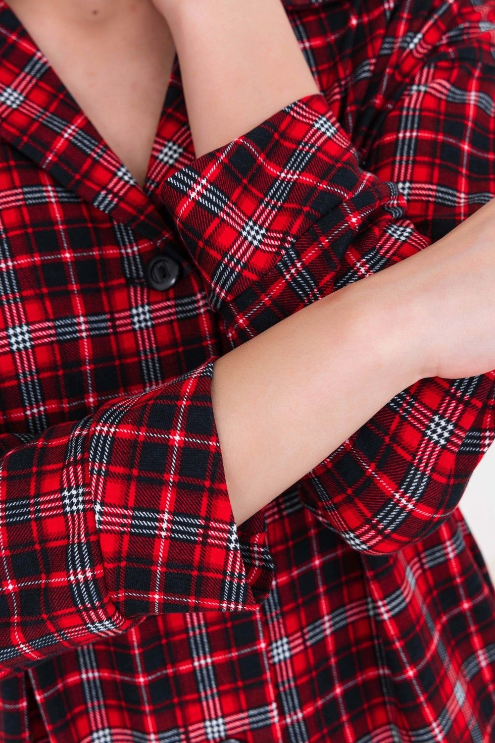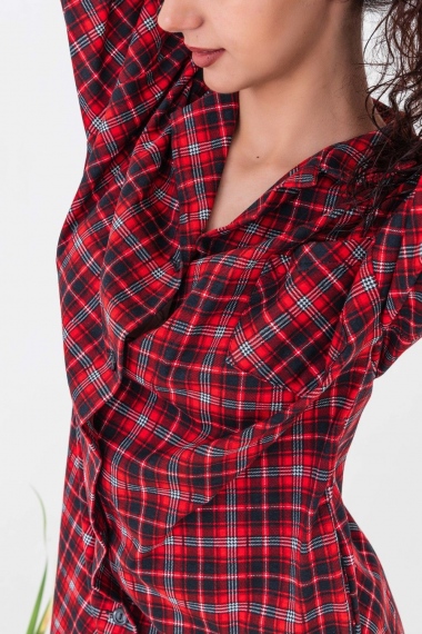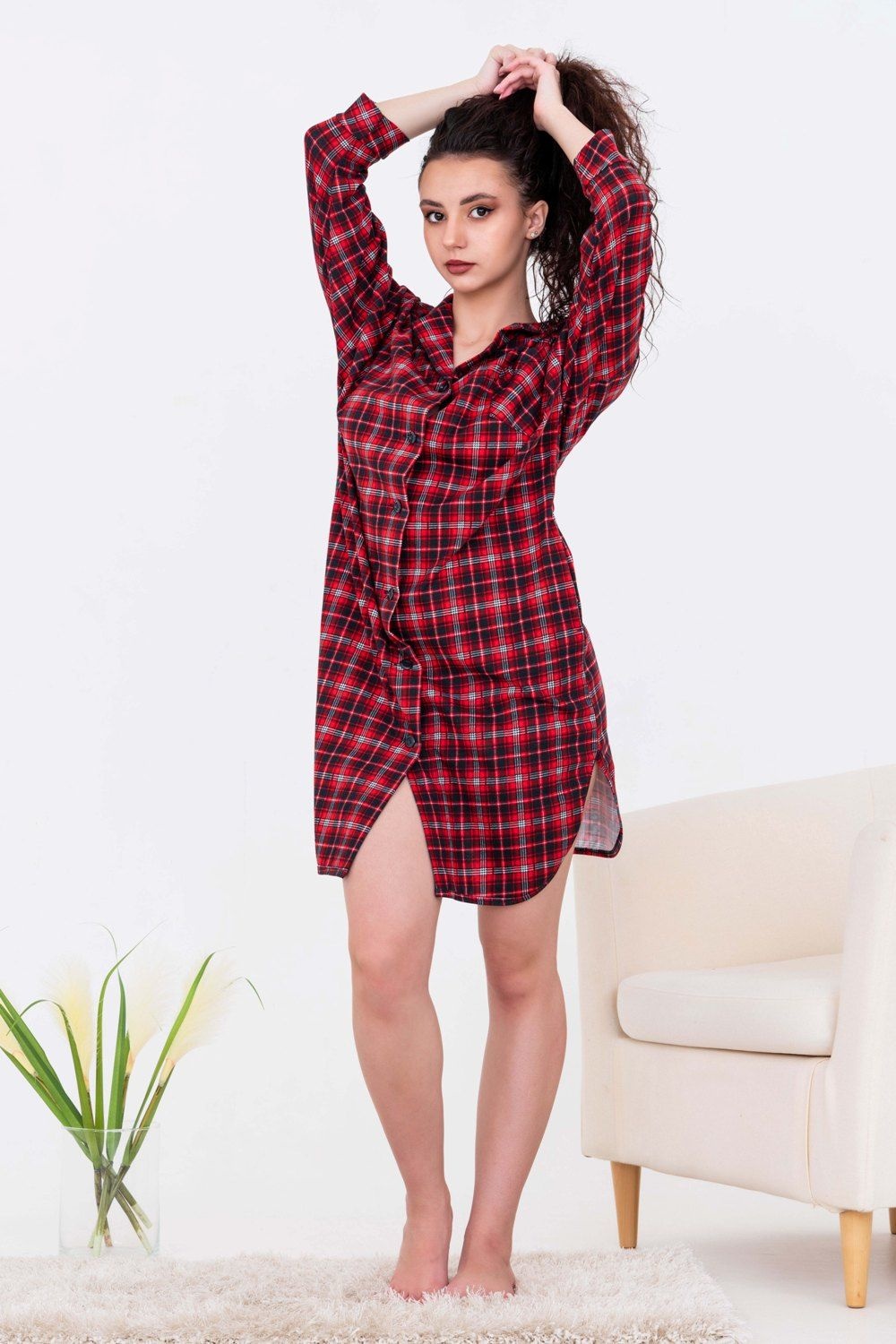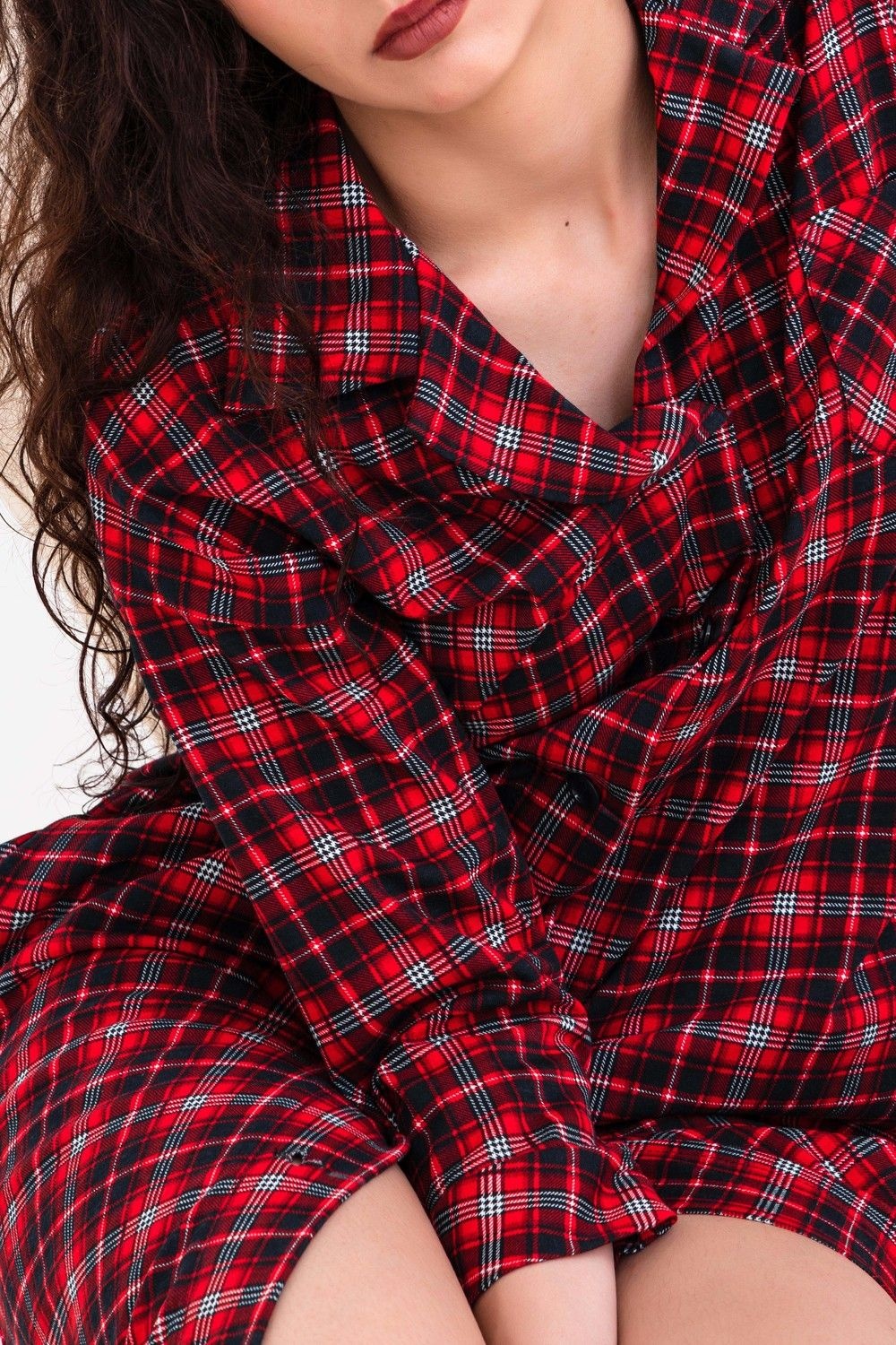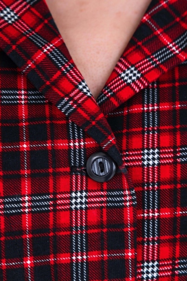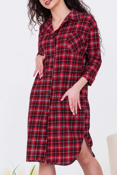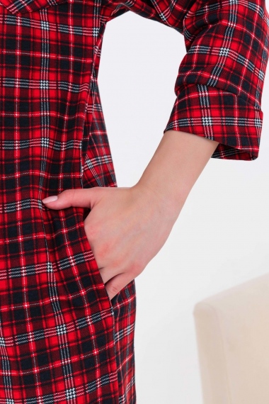 Халат на пуговицах свободного рубашечного кроя. Спущенная пройма. Рукава с манжетами. На груди карман. Низ халата обработан широкой бейкой. Длина рукава в замерах указана от точки основания шеи. Модная в этом сезоне клетка не оставит Вас без внимания, а свободный крой позволит чувствовать себя комфортно и уверенно.