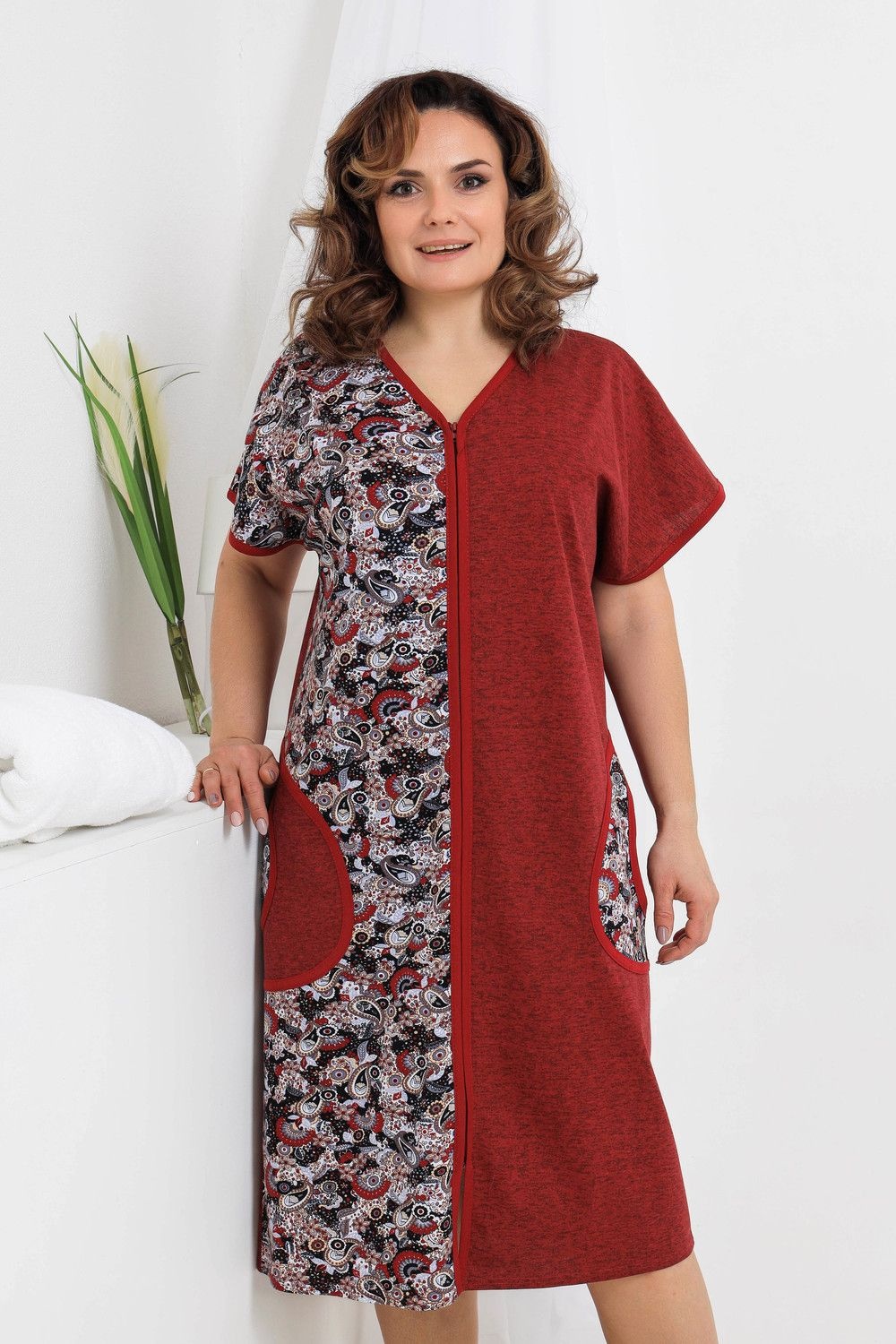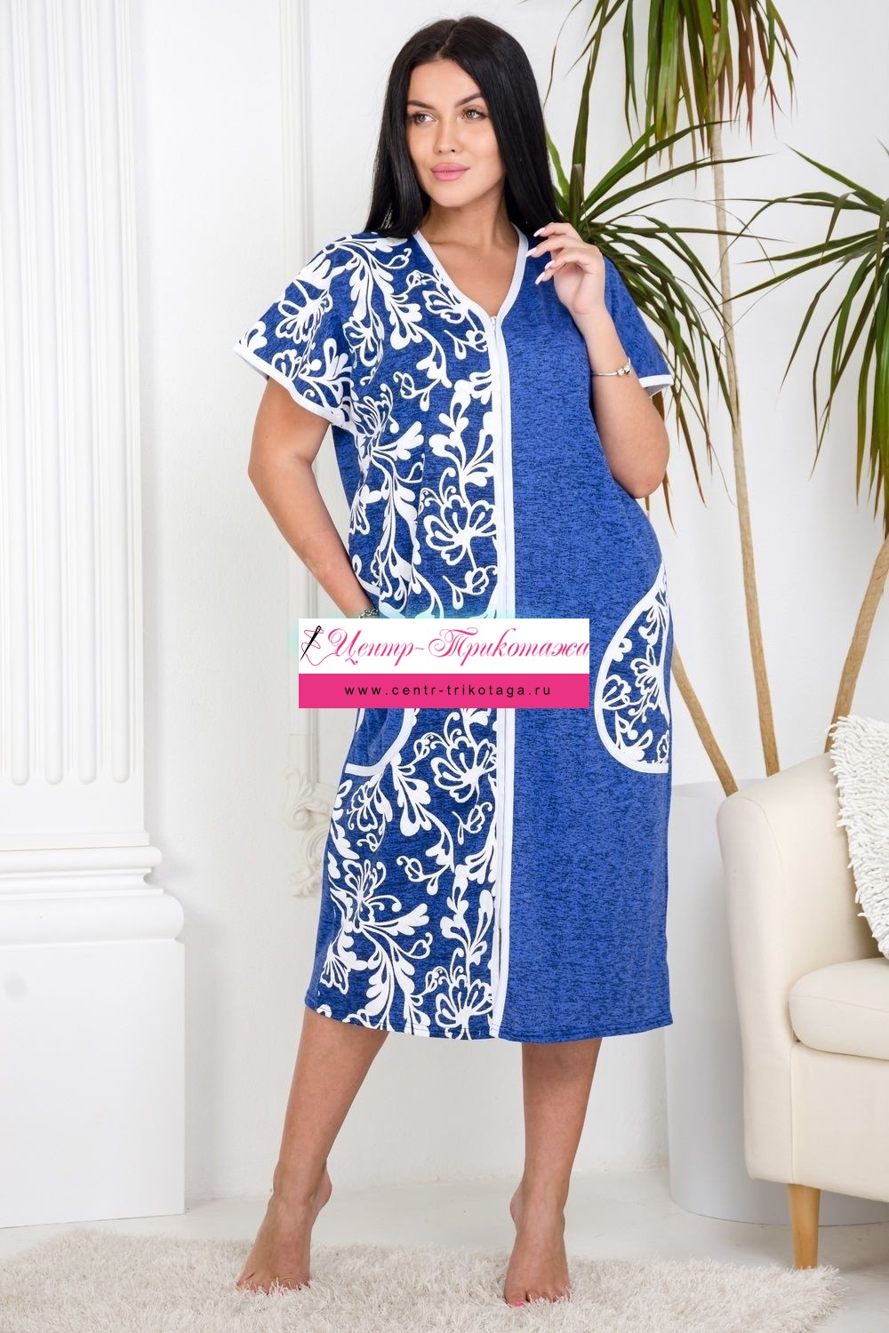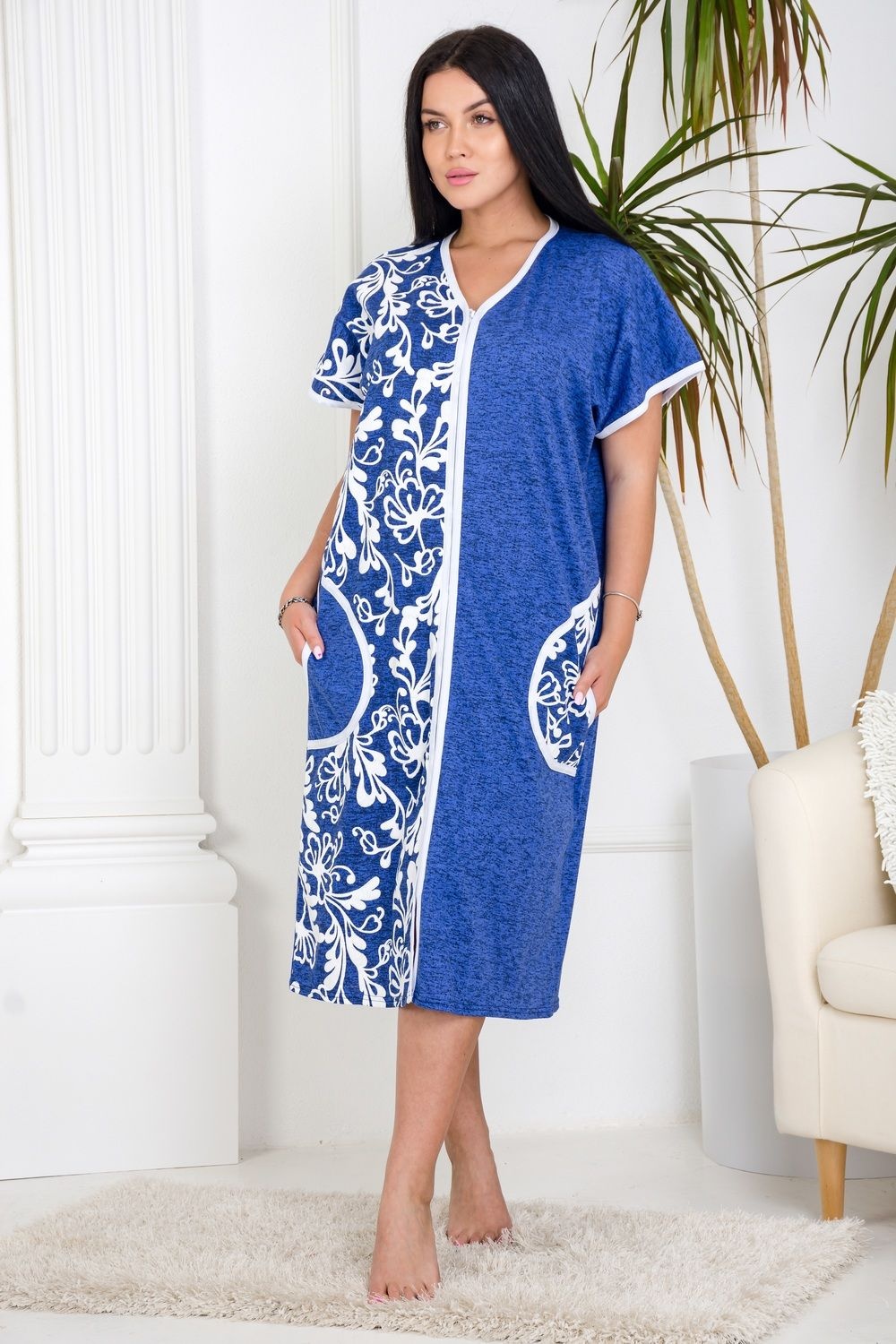 Уютный безрукавный домашний халат. Модель выполнена из 100% хлопка, на молнии, с двумя карманами по бокам. Незаменимая вещь в женском гардеробе.