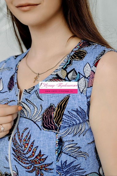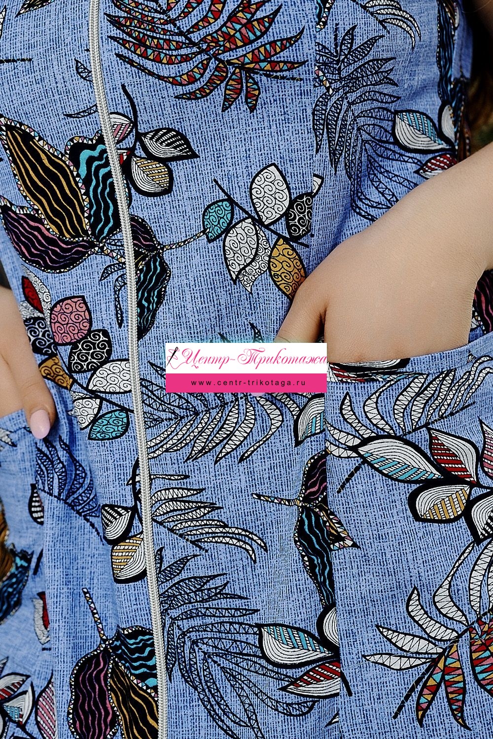 Женский халат изготовлен из трикотажного полотна. Модель без рукавов с карманами и поясом, подойдет для любого типа фигуры. Халат прекрасно подойдет как для дома, так и для дачи, а яркая расцветка всегда актуальна. Эта модель хороший выбор в жаркий летний день!
