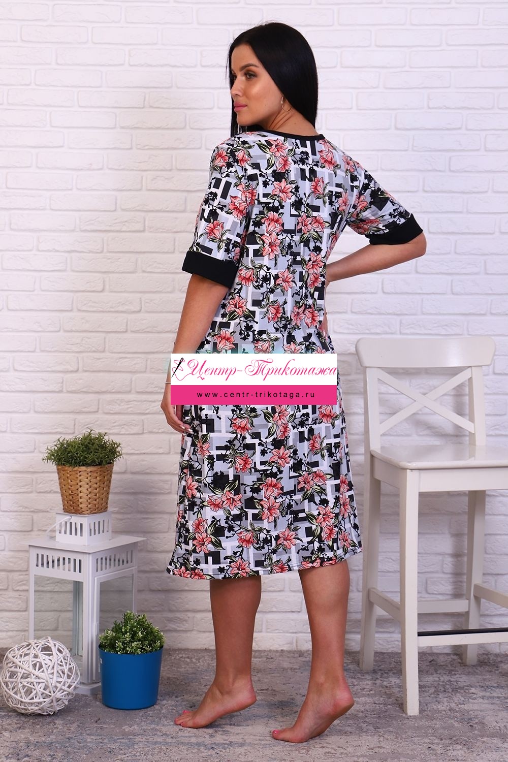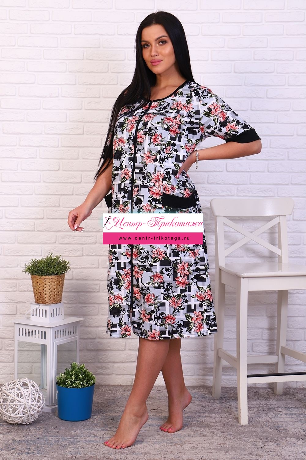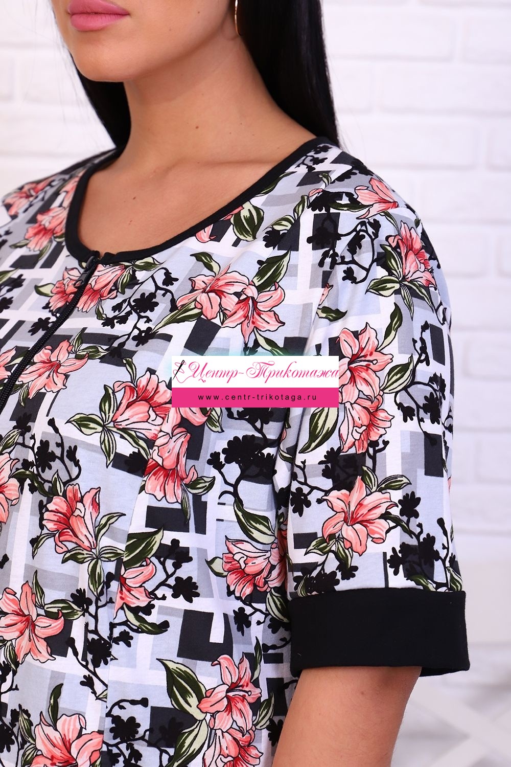Халат женский на молнии с накладными карманами, рукав короткий на манжете, на полочке рельефы.