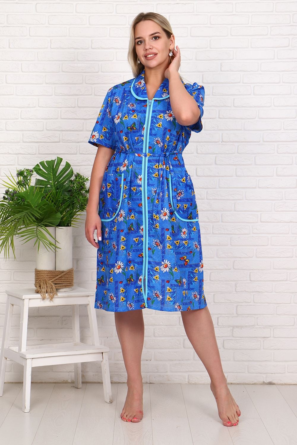 Женский домашний бязевый халат на молнии. С приспущенным рукавом и двумя накладными карманами, с поясом. Изделие окантовано бязевой окантовкой. Халат подходит для женщин любого возраста. В нём удобно и комфортно. Рекомендуемая стирка при 30°.