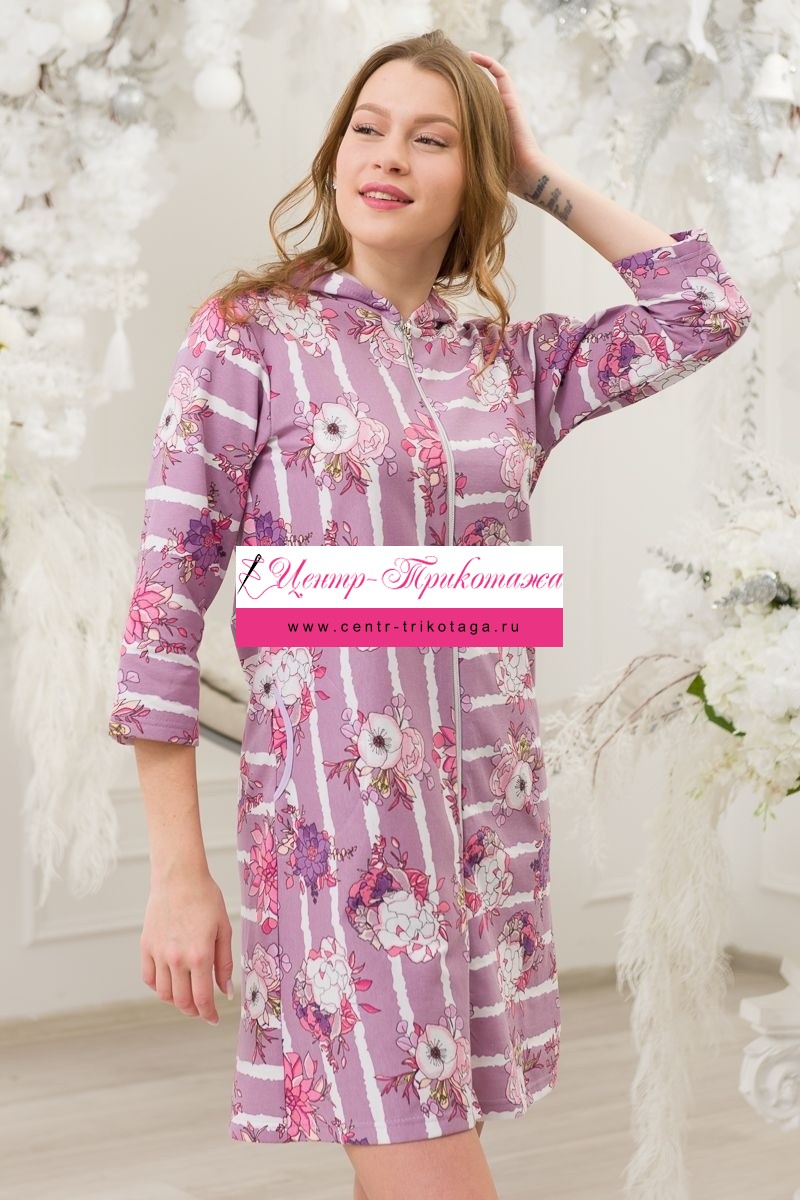 Халат женский из футера Розана сиреневый №А-04302