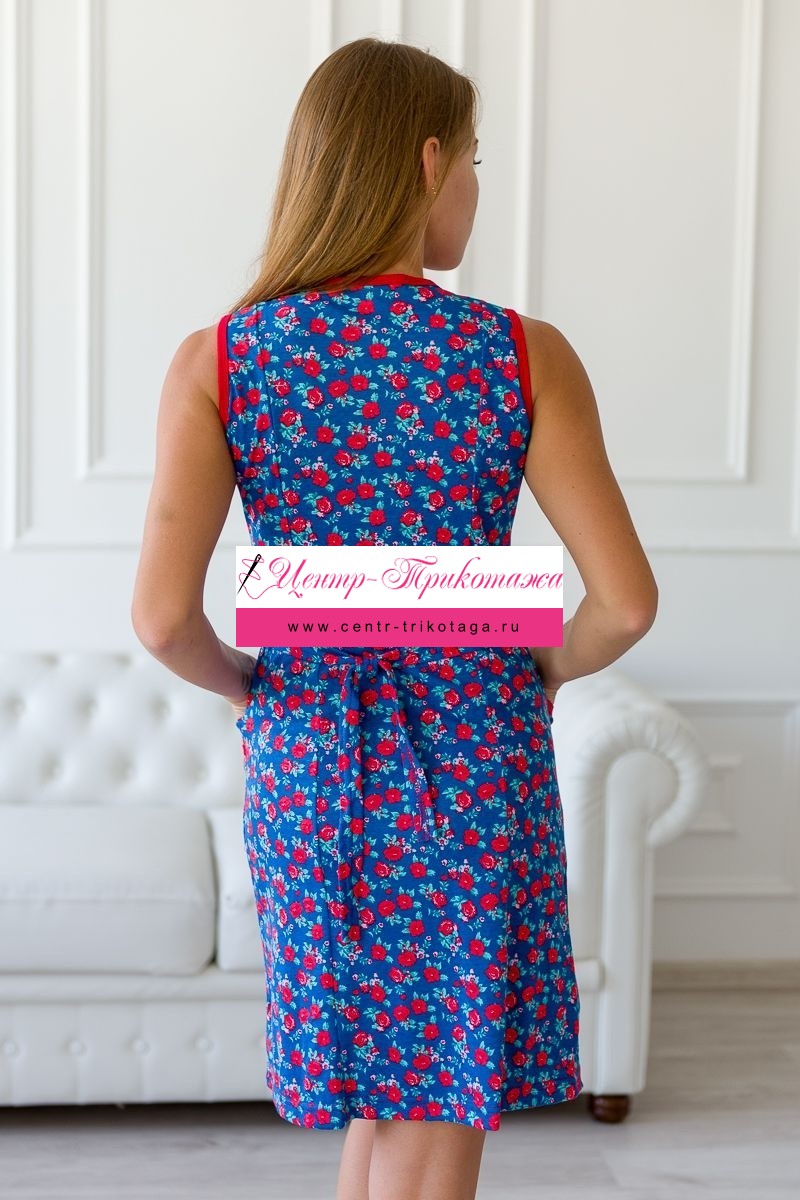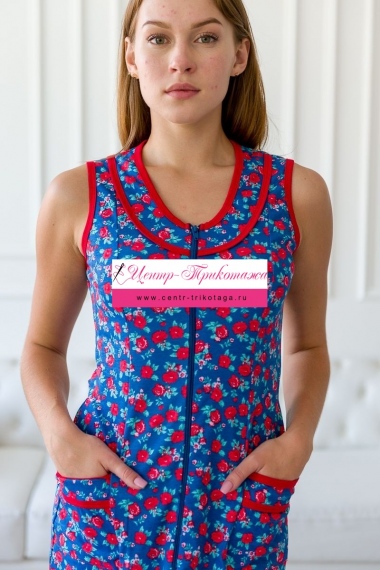 Халат женский из интерлока Матрешка красно-синий №А-04239