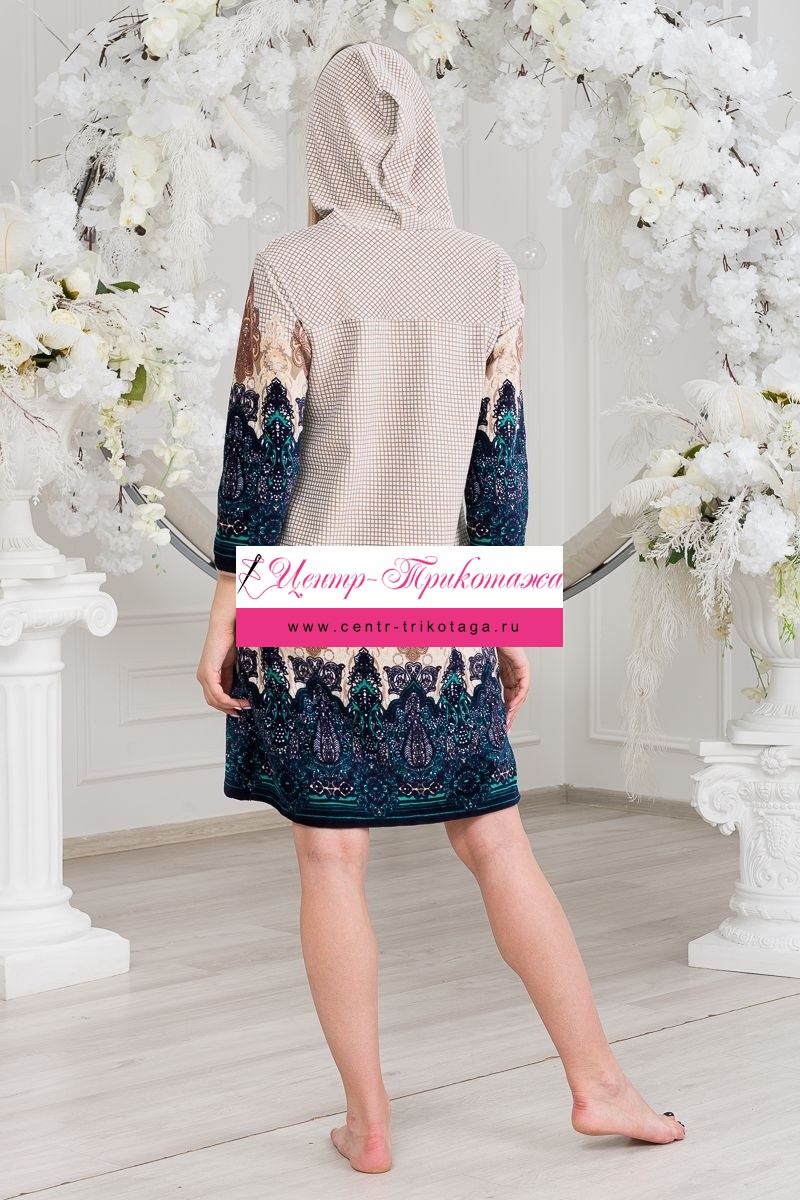 Халат женский из велюра Орнамент бежевый №А-04344