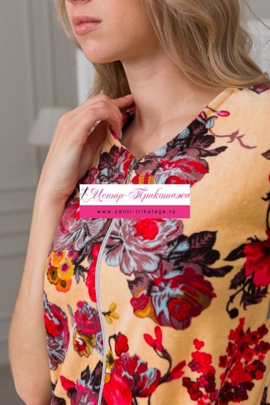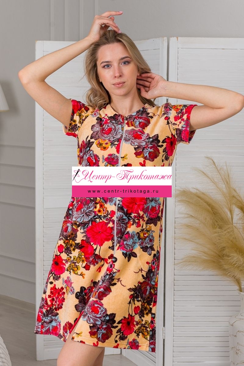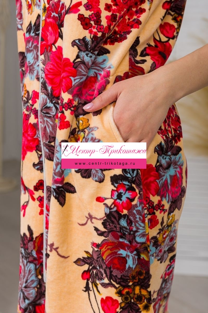 Халат женский из велюра Сан-Франциско желто-красный №А-04333