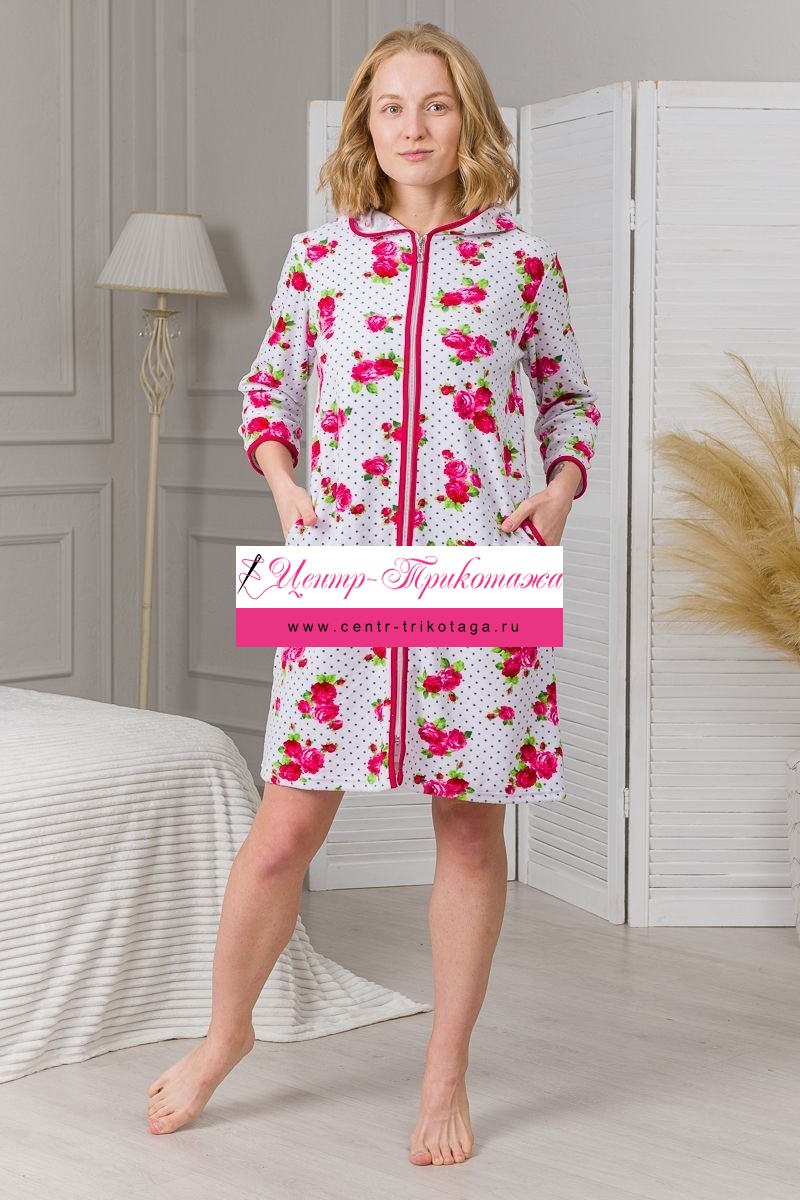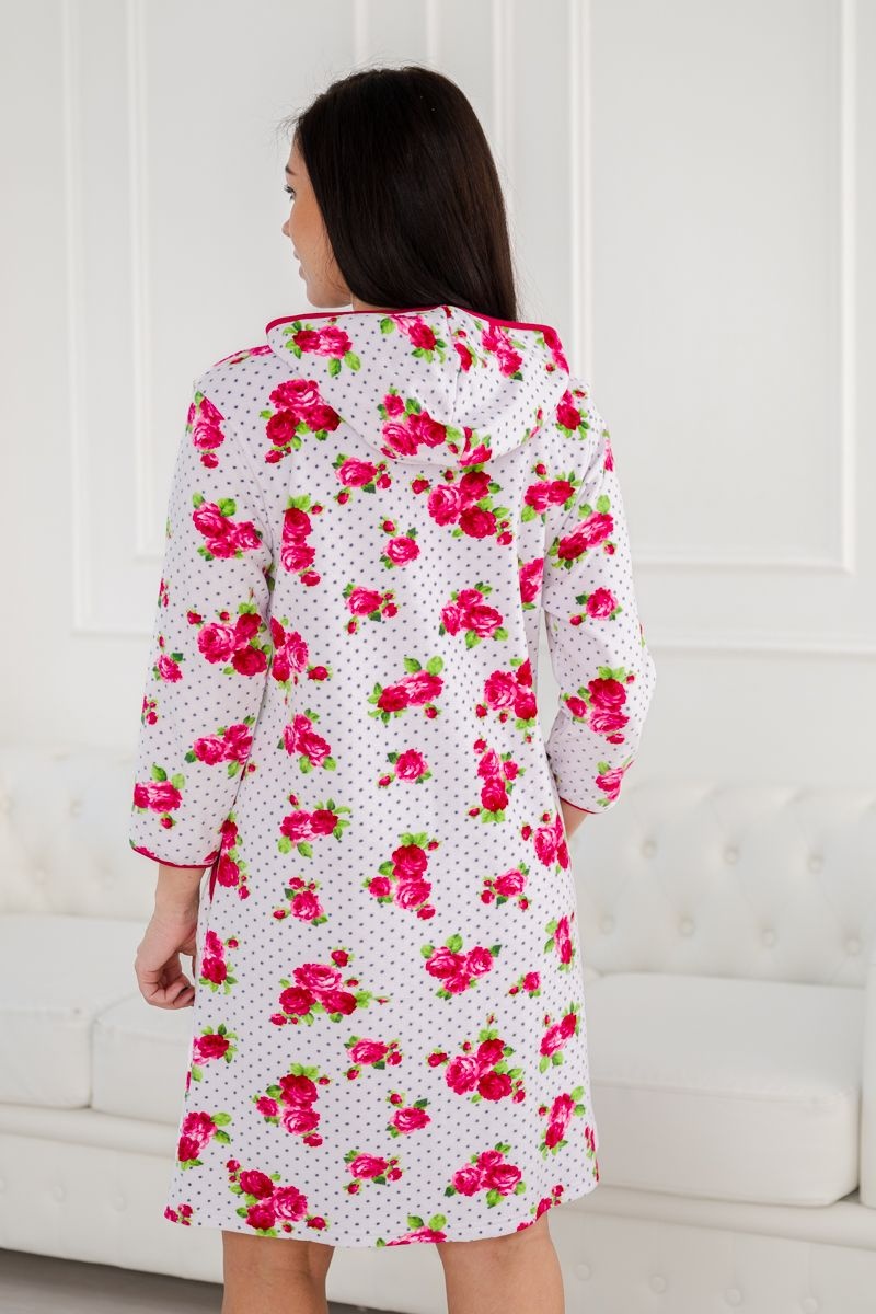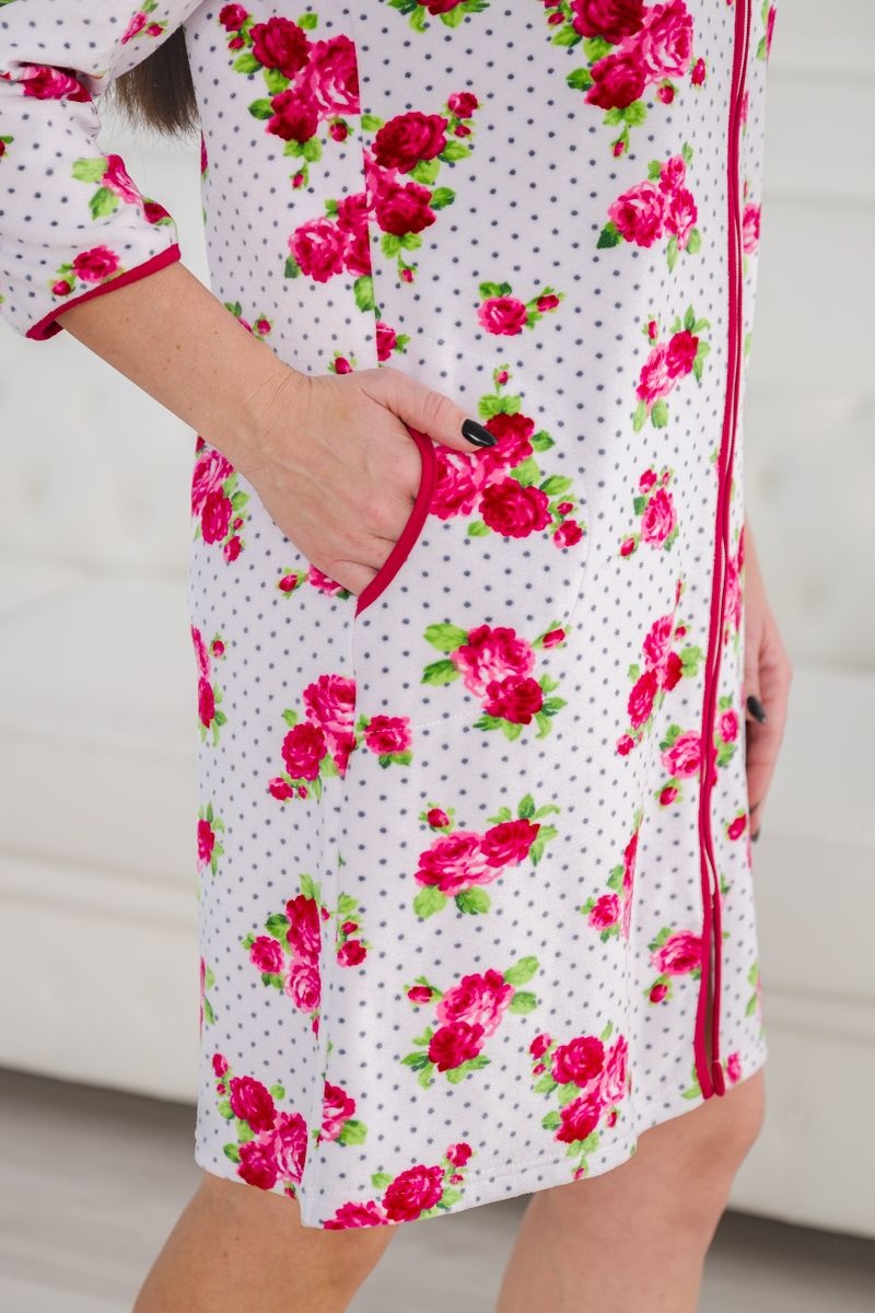 Халат женский из велюра Валенсия малиновые розы №А-04336