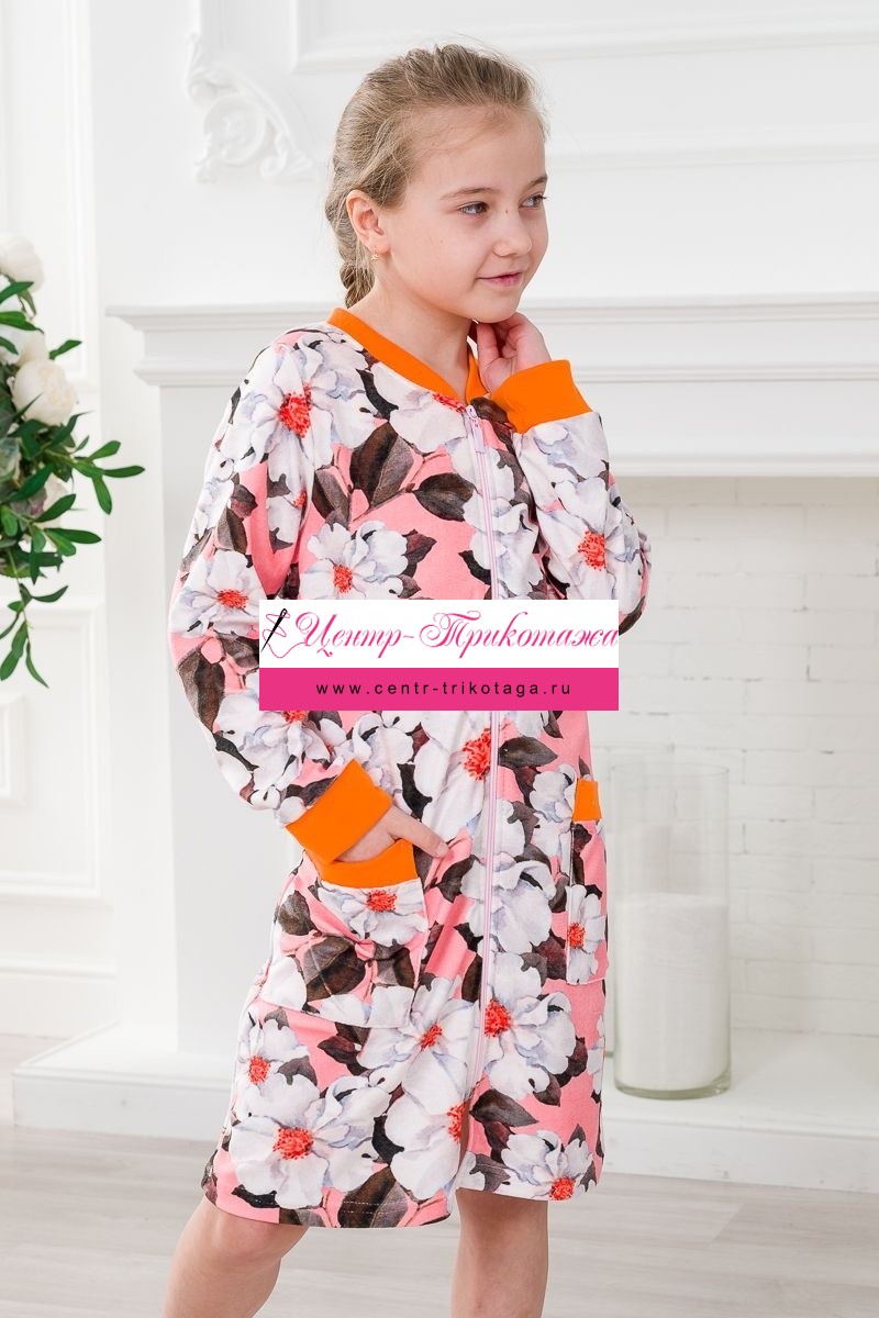 Халат подростковый из иконвелюра Аманда персик №А-06281/2
