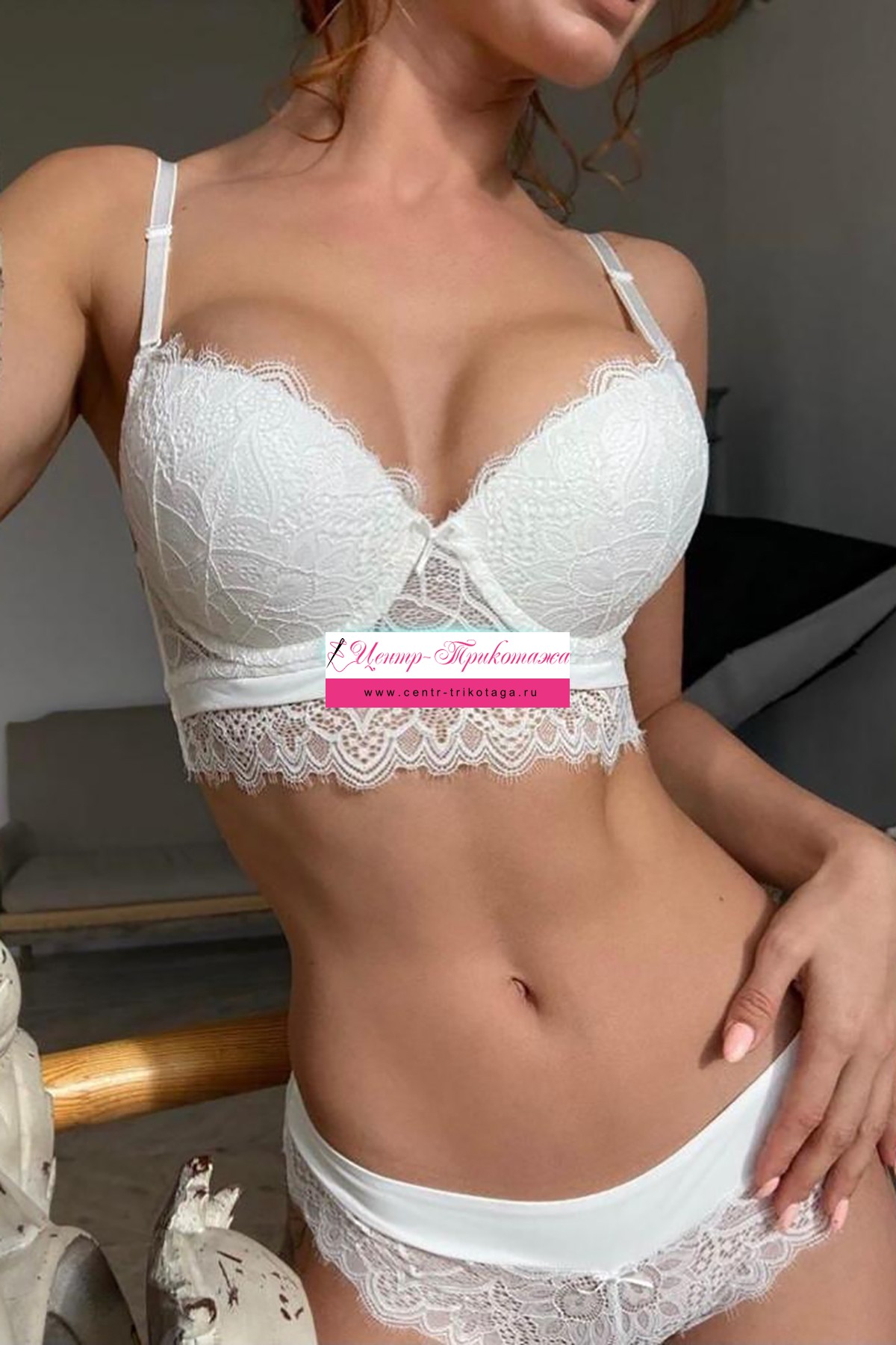 Съёмные бретели регулируются по длине. Бюстгальтер украшен кружевом и бантиком посередине.