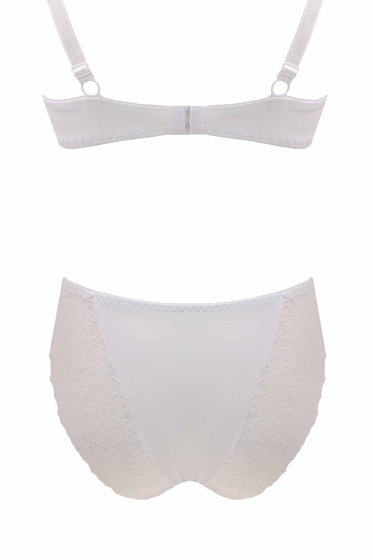 Бельевой комплект женский: бюстгальтер, трусы. Бюстгальтер женский с мягкими чашечками и с косточками. Несъёмные бретели регулируются по длине. Застёжка на крючки и петли сзади. Украшен тонким кружевом на чашечках и бантиками. Трусы низкой посадки с эластичными мягкими резинками, украшены вставками из тонкого кружева и баником посередине.