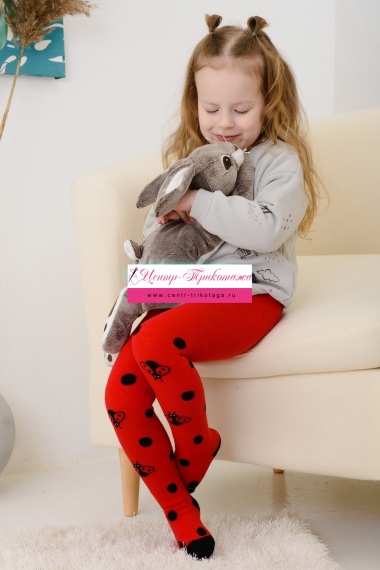 Теплые плюшевые колготки с вывязанными божьими коровками
