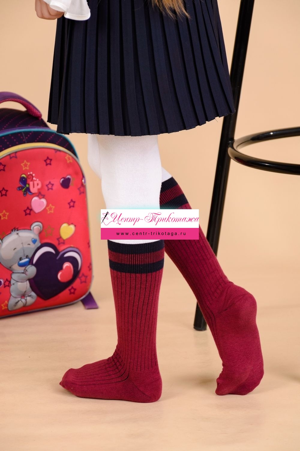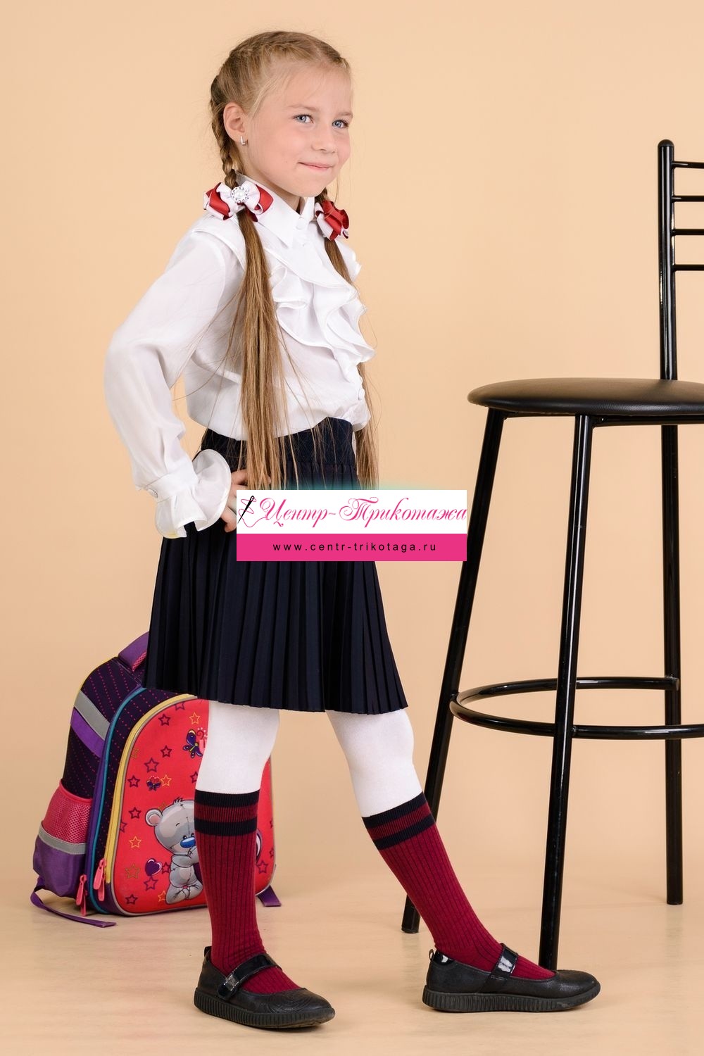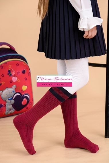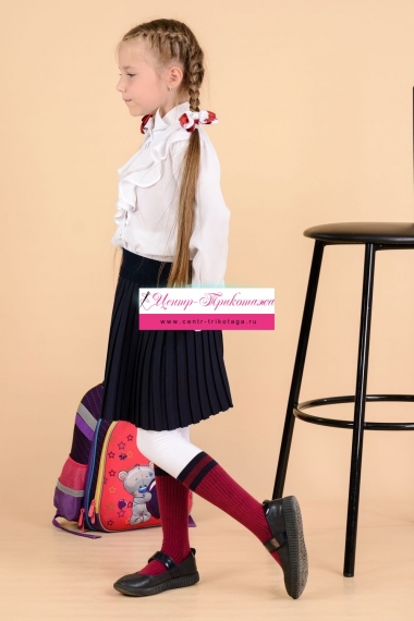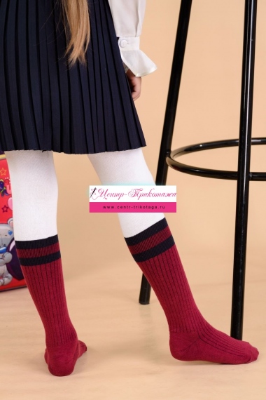 Оригинальные колготки для школьников. Однотонный гладкий верх, низ имитирует гольфы контрастного цвета в узкую полоску. Спокойный дизайн и расцветка колготок отлично подойдут для стильного школьного образа.