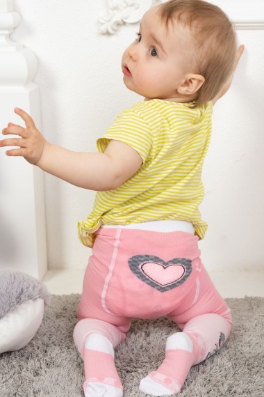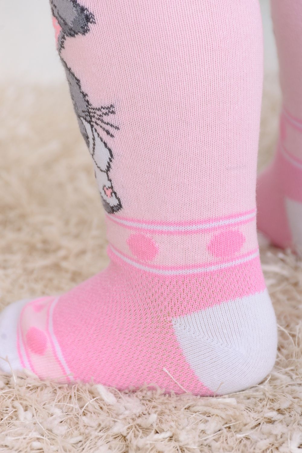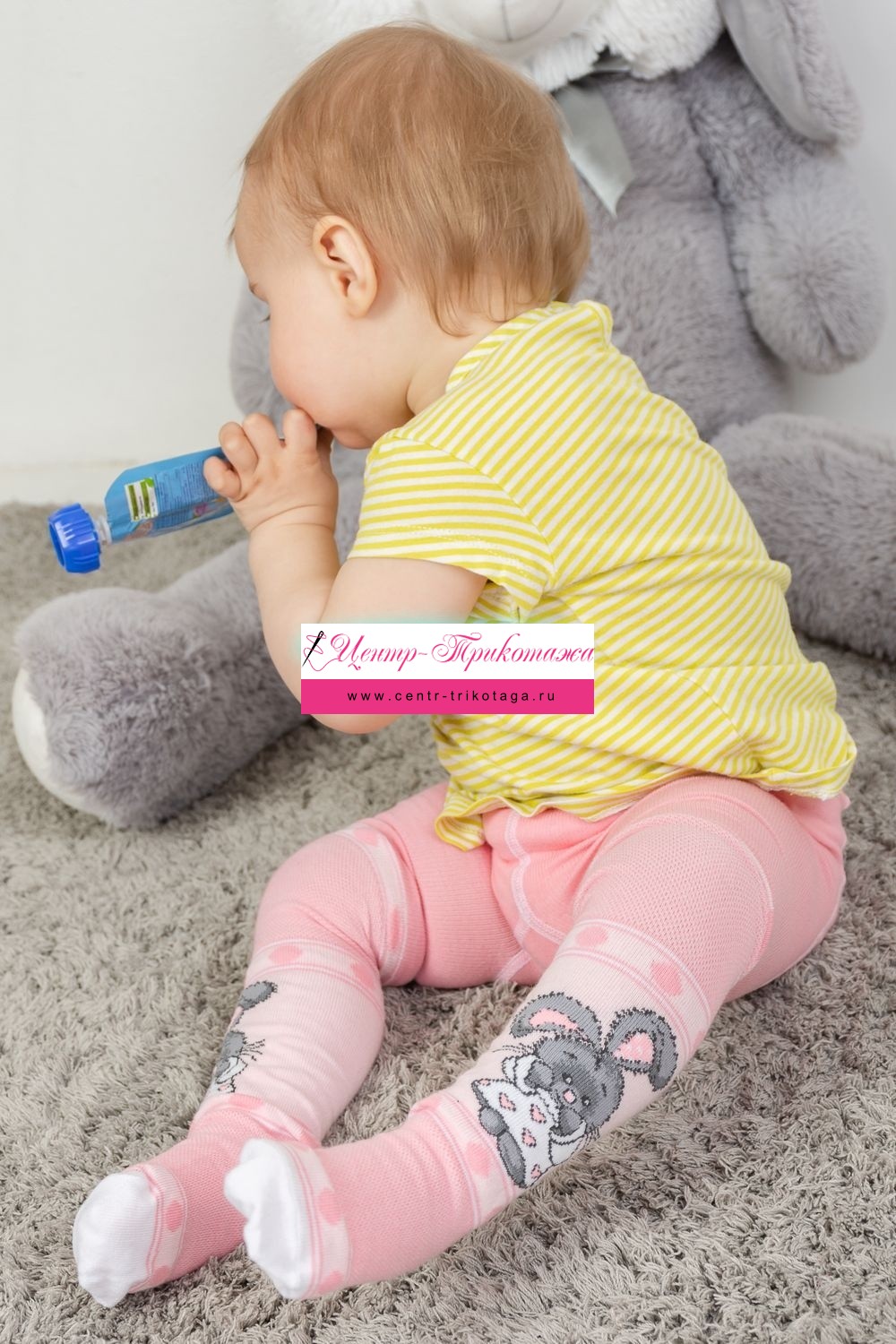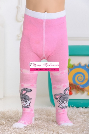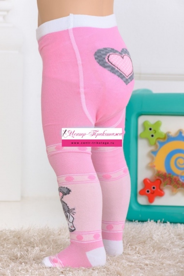 Милые колготки для самых маленьких. Нежные цвета - розовый и салатовый, спереди рисунок - симпатичный зайчик, сзади - сердечко