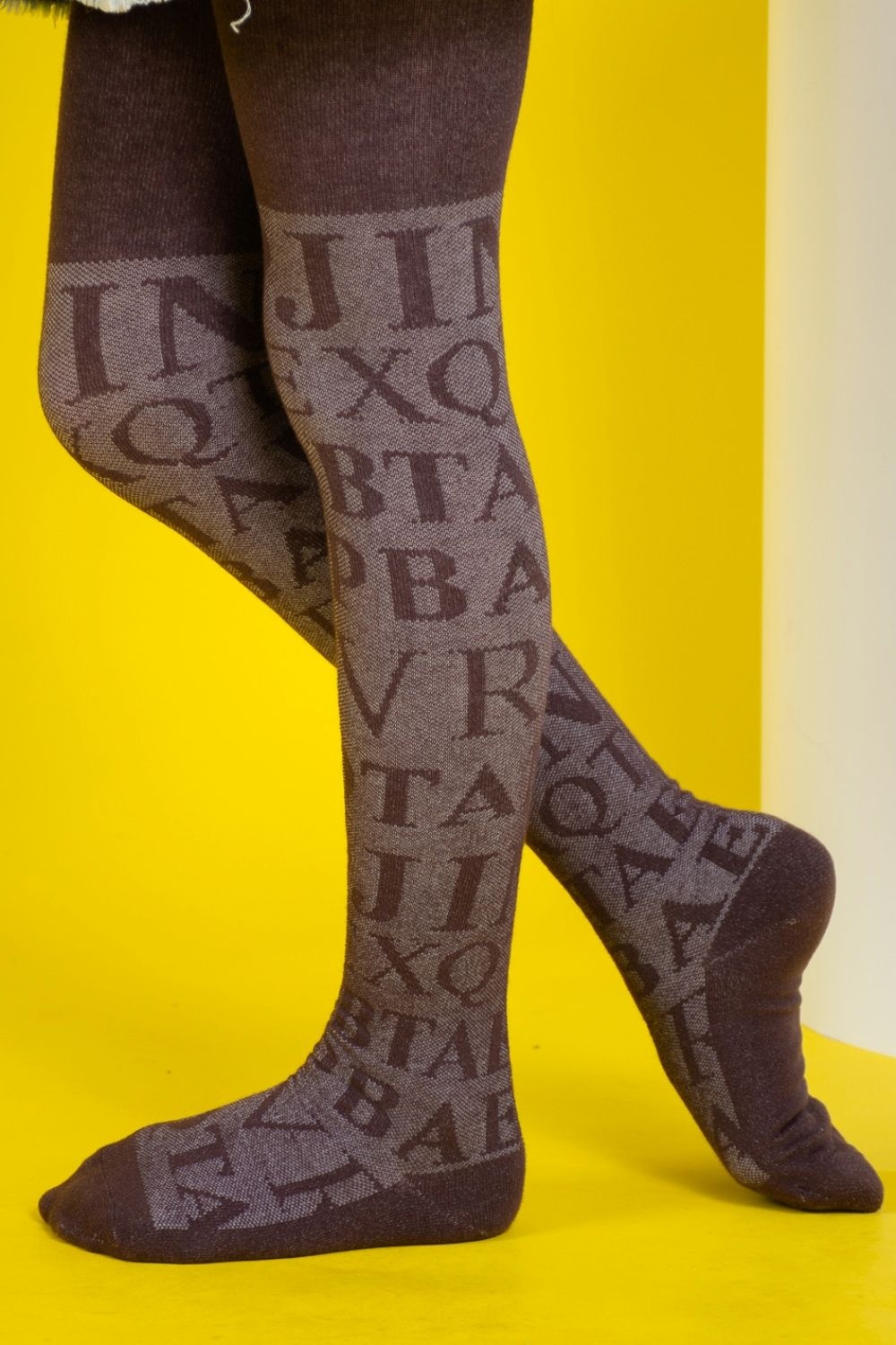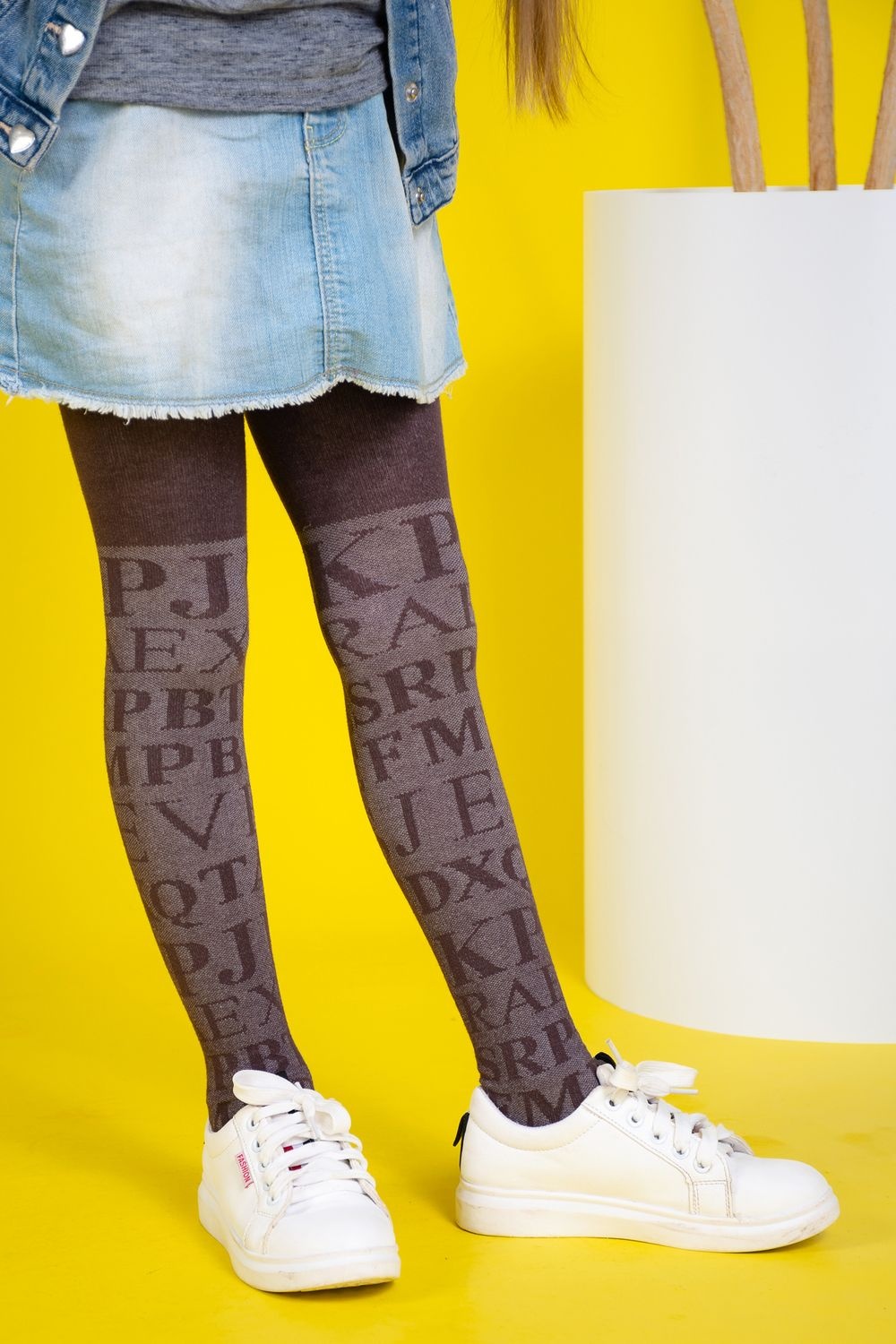 Подростковые колготки с лаконичным рисунком в виде букв - модель отлично подойдет как для школы, так и на каждый день.
