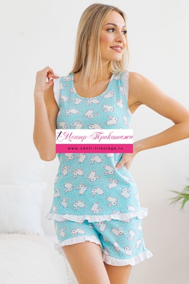 Комплект из майки и шорт из кулирки Флаффи ментол №А-02172